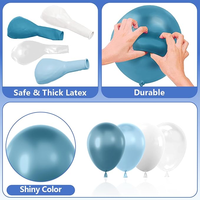 111pcs Dusty Blue and White Balloon Garland Arch Kit – Assorted 18/12/5 Inch Slate Blue, Matte White & Clear Bobo Balloons – Premium Decoration Set for Baby Shower, Wedding, Bridal Shower & Birthday
