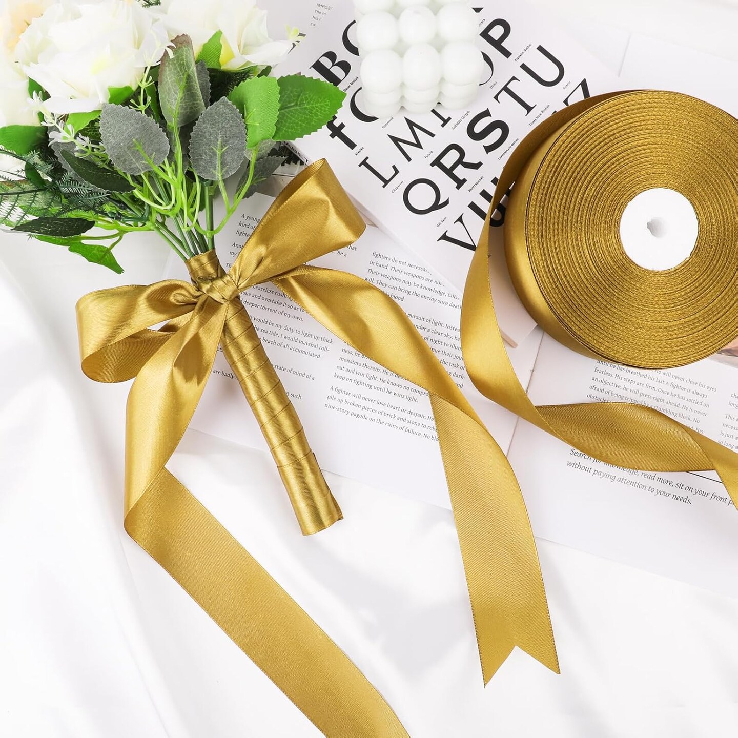 1-1/2 Inch Gold Satin Ribbon - 100 Yards Ribbon (Olive Gold)