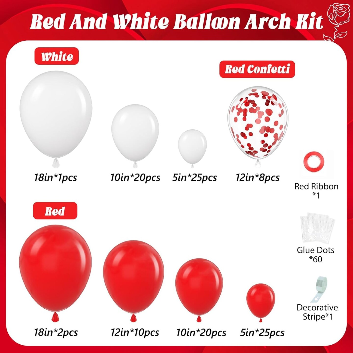 114pcs Red and White Balloons, Red and White Balloon Arch Kit(Red)
