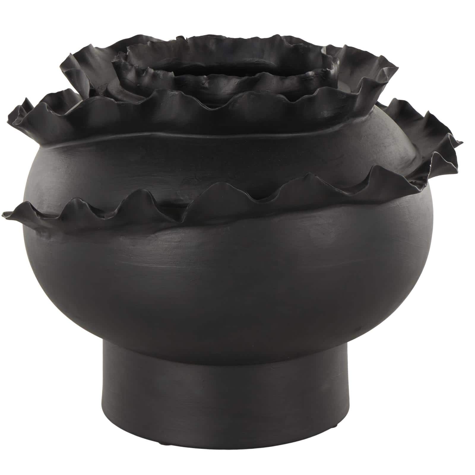 11.5" Black Wide Abstract Floral Ceramic Vase with Layered Petals
