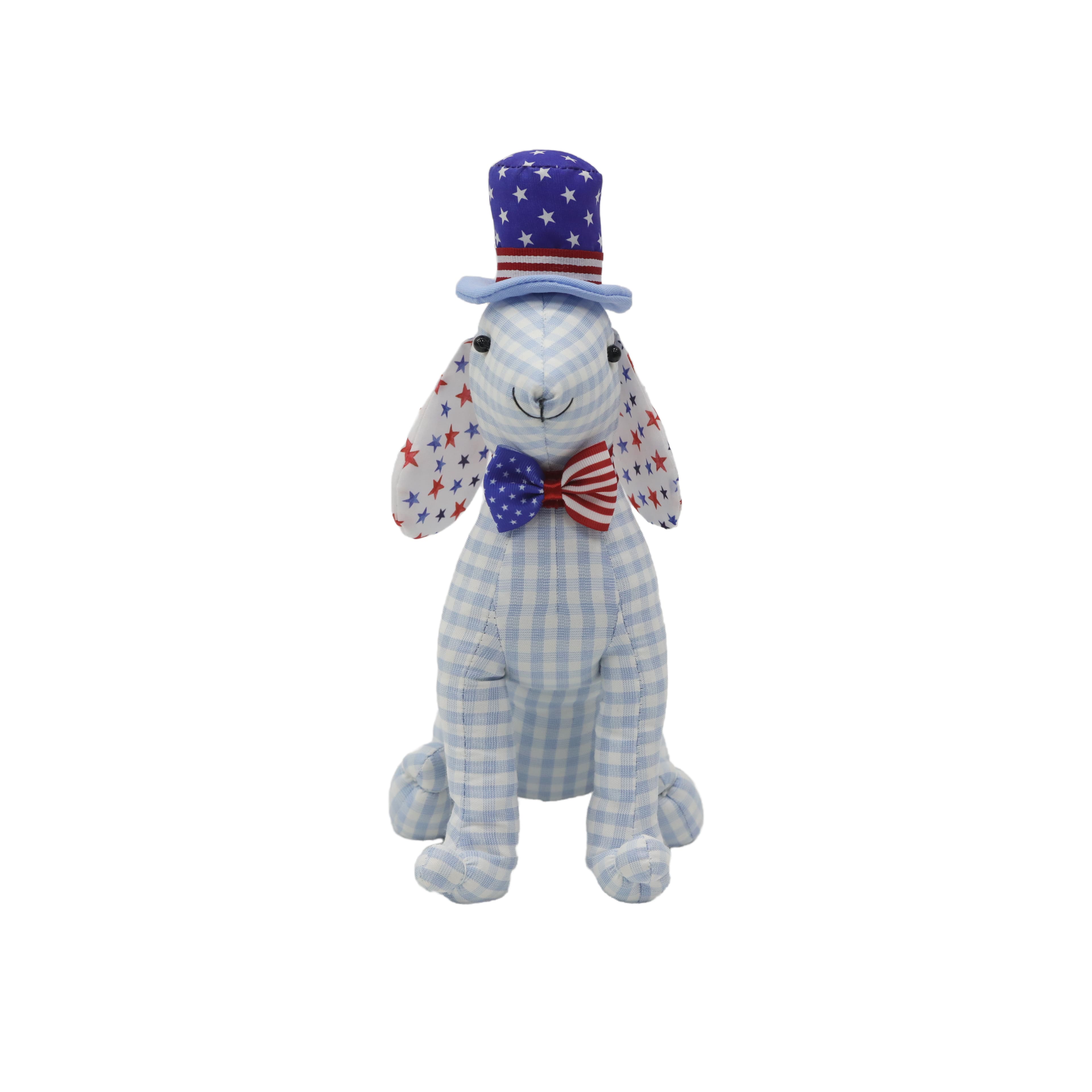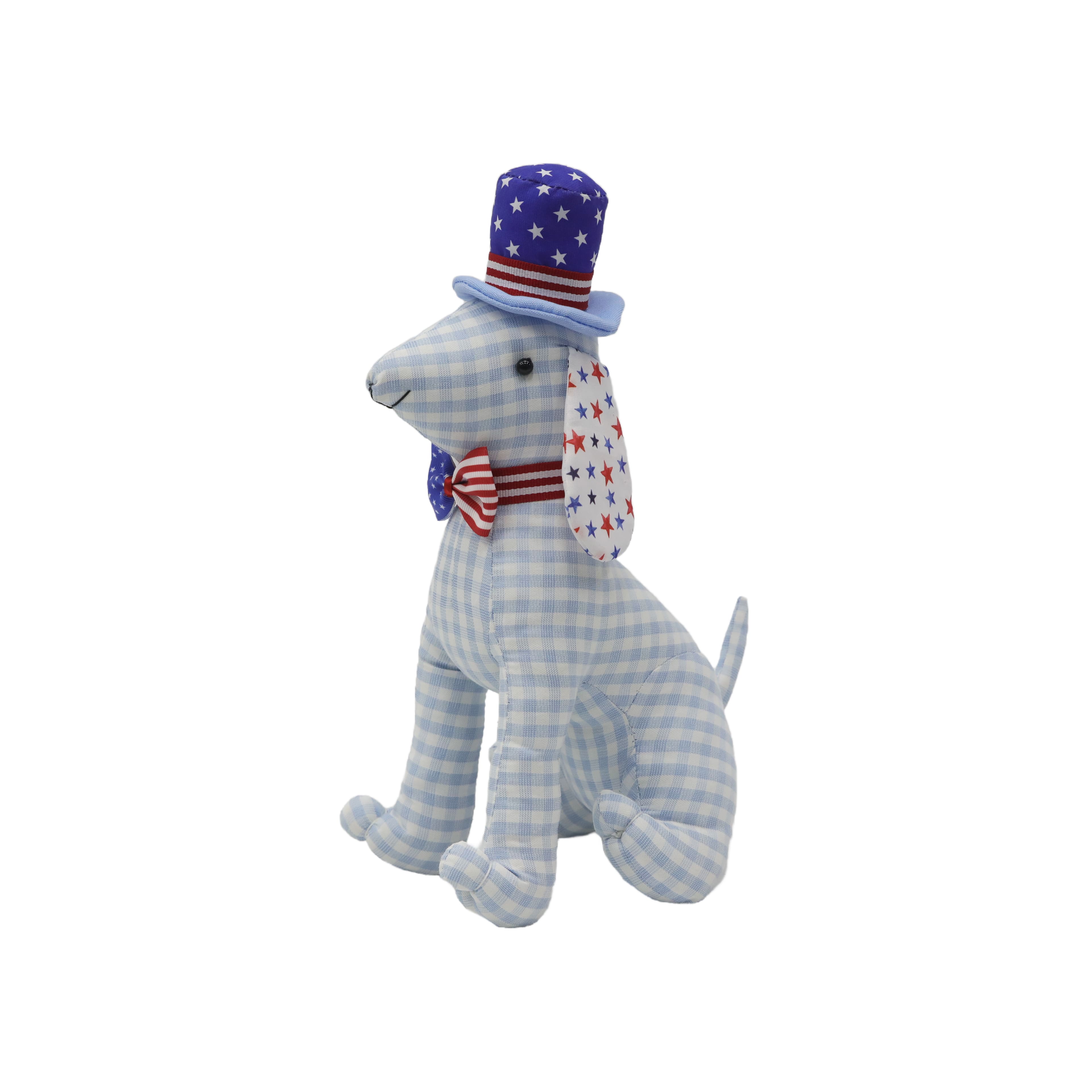 11.5" Blue Gingham & Star Fabric Dog by Celebrate It™