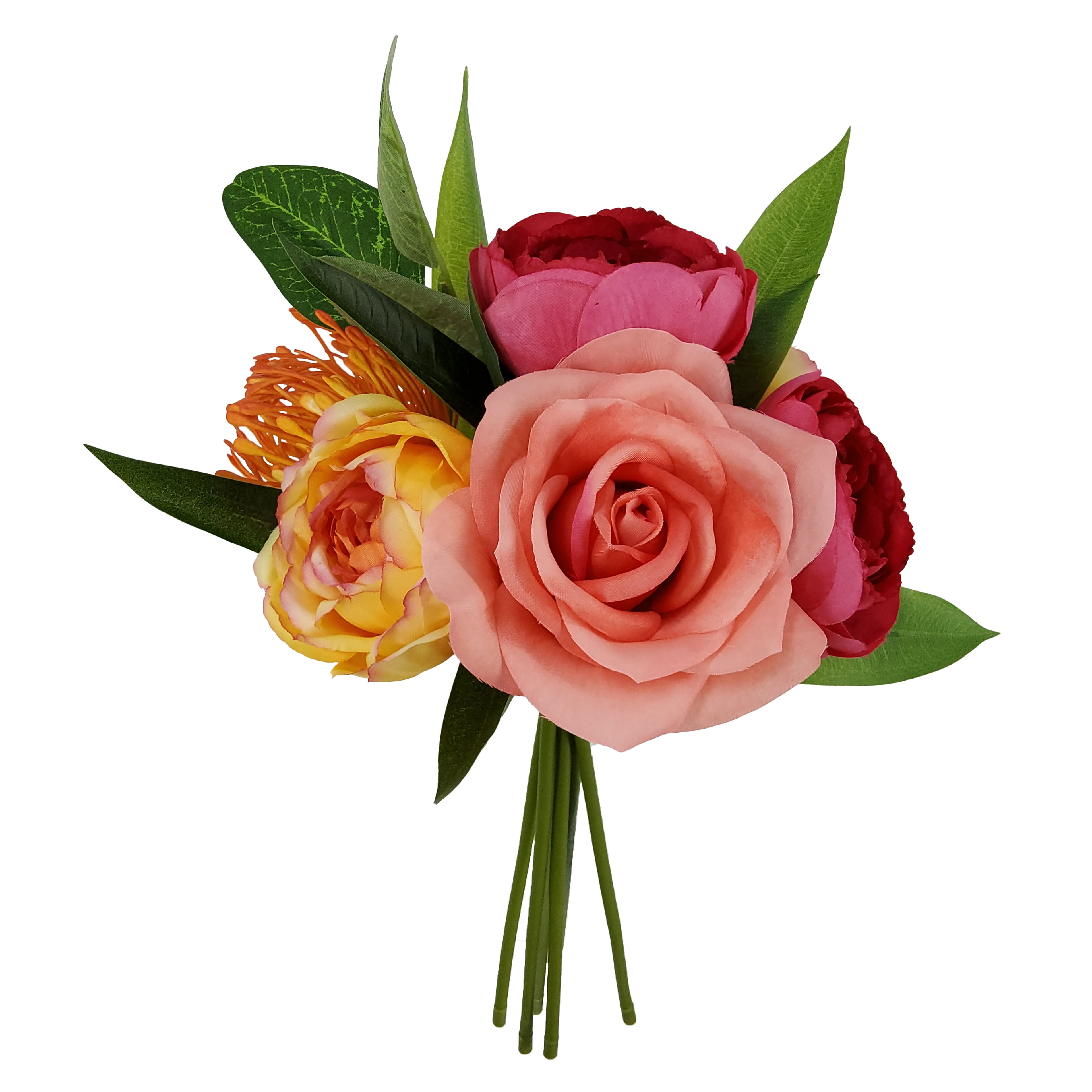 11.5" Coral & Fuchsia Ranunculus & Rose Bouquet by Ashland®