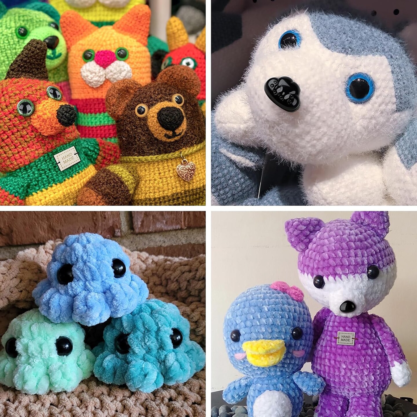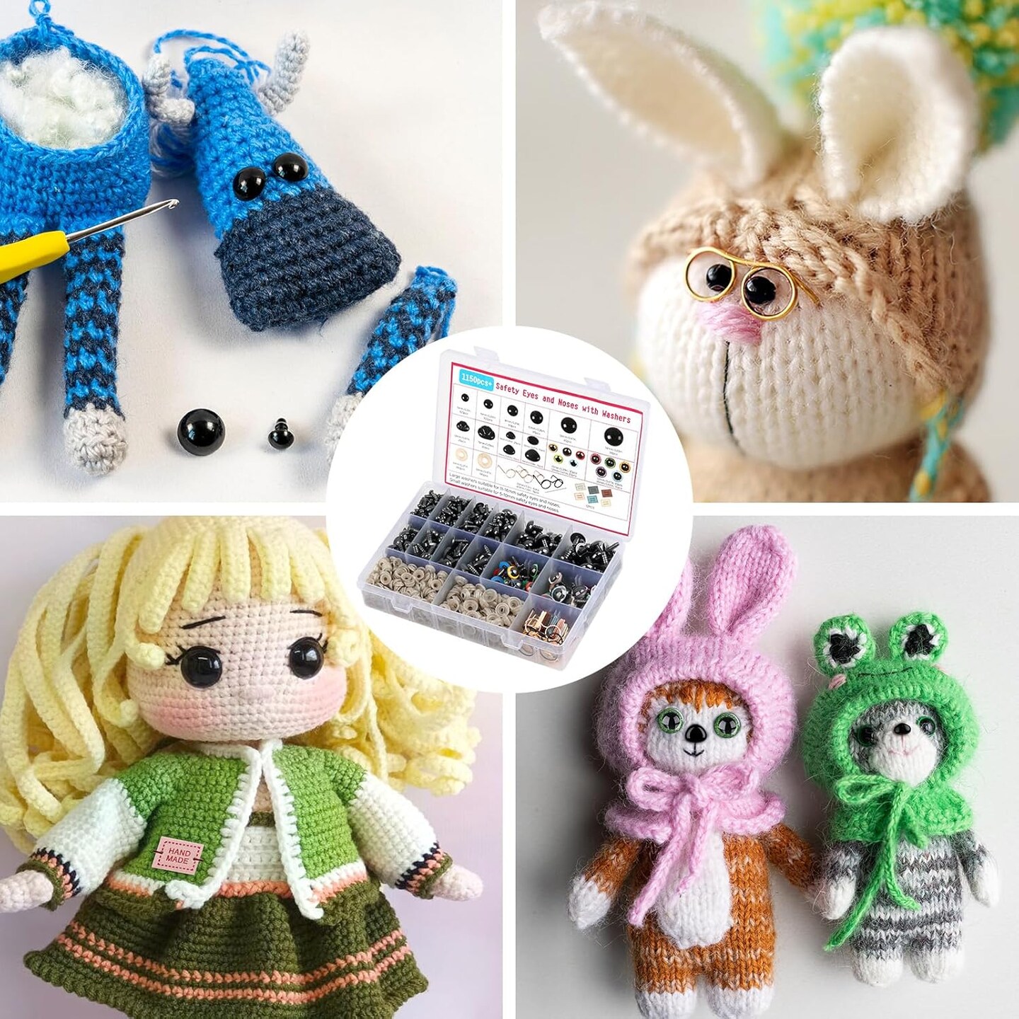 1150PCS Safety Eyes & Noses for Crocheting – 5mm-16mm Crochet Eyes, Glitter Doll Eyes with Washers, Doll Glasses, and Handmade Tags for Amigurumi, Stuffed Animals, Plush Toys DIY Crafts