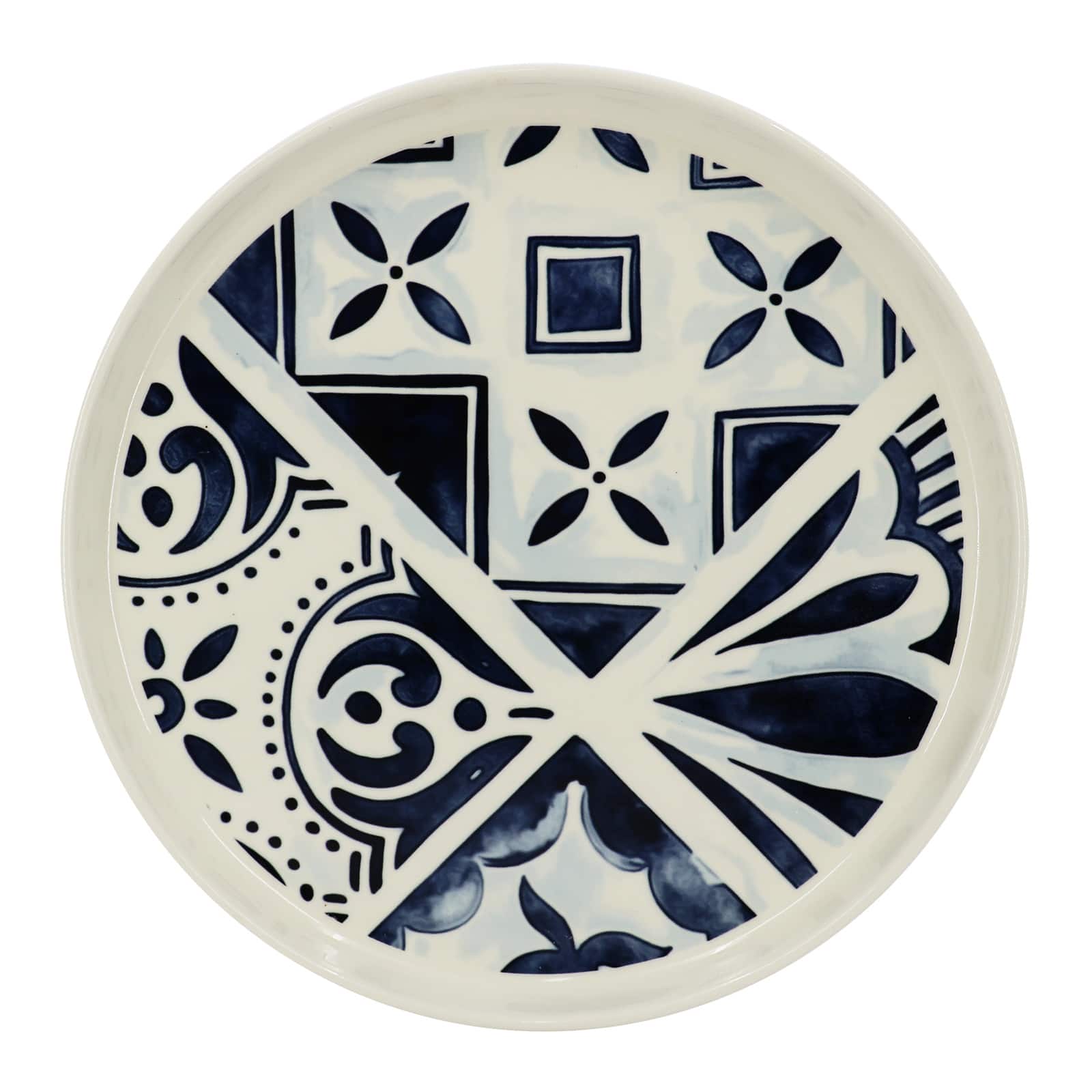 11.6" White & Blue Tile Ceramic Plate by Ashland®