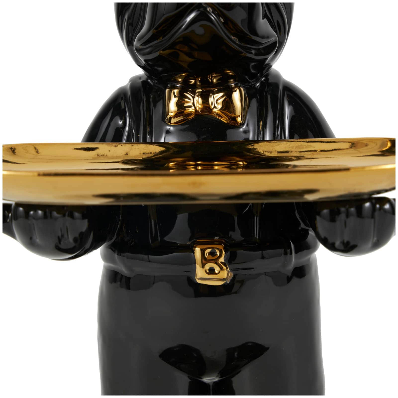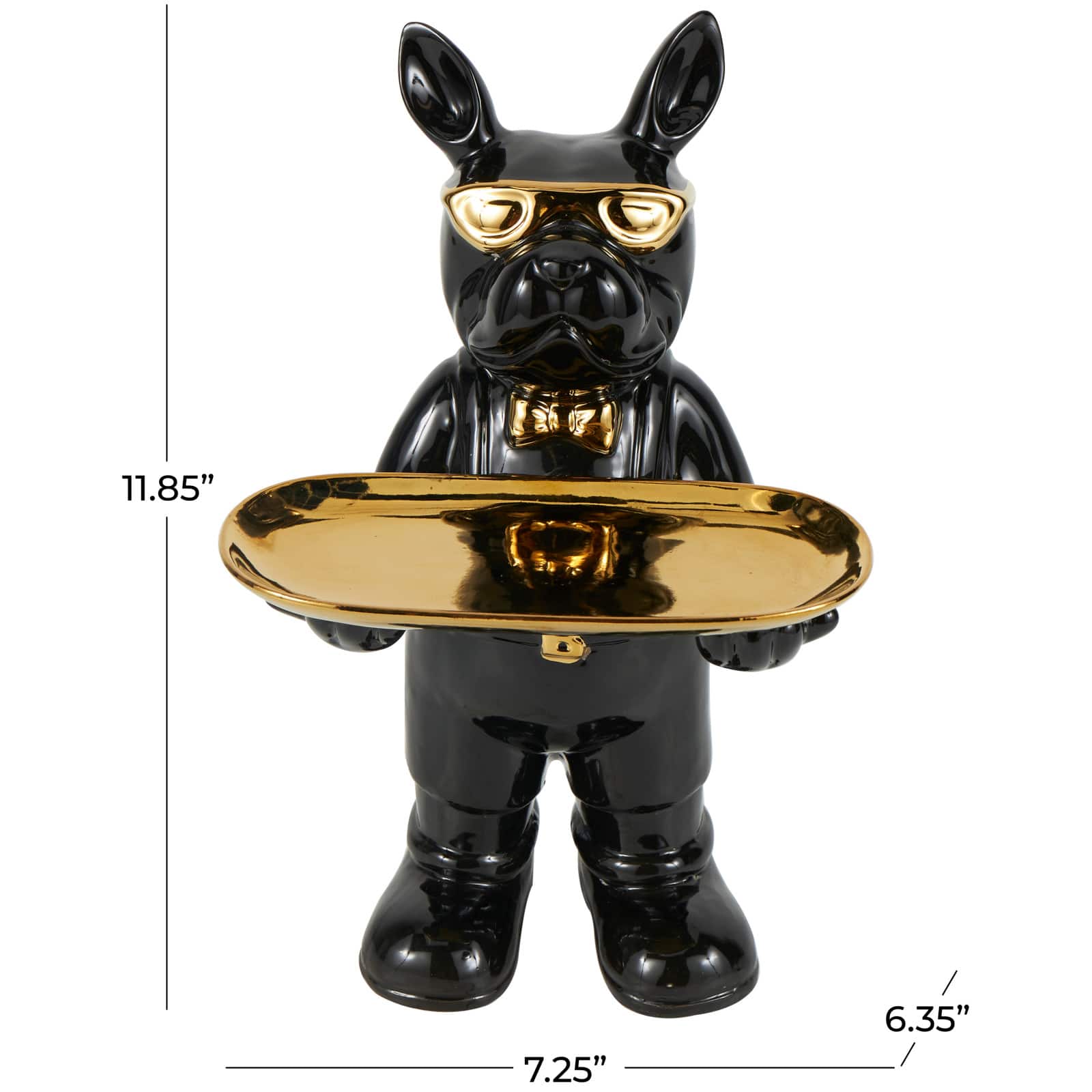11.75" Black Ceramic Bulldog Sculpture with Golden Platter Décor