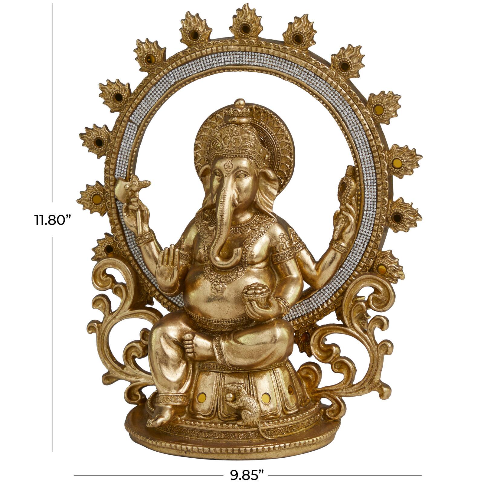 11.75" Golden Ganesh Eclectic Tabletop Sculpture