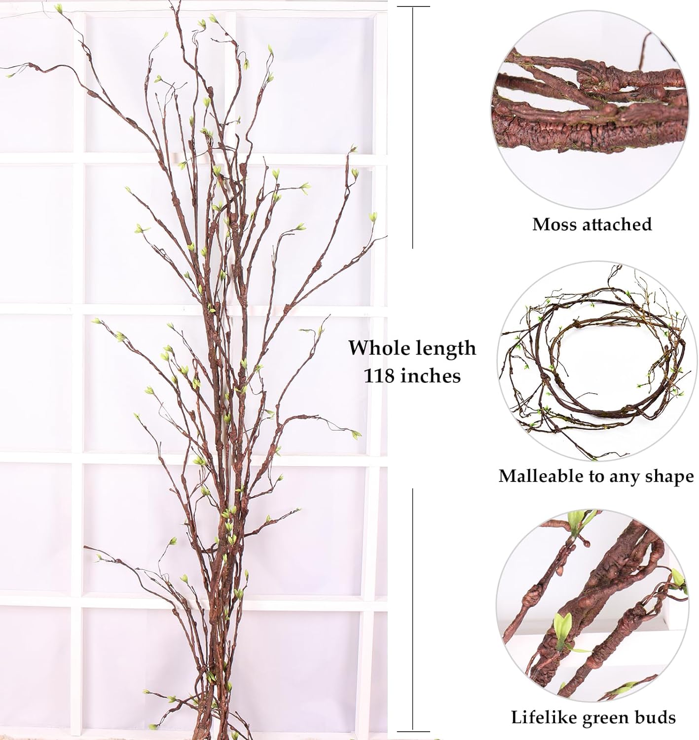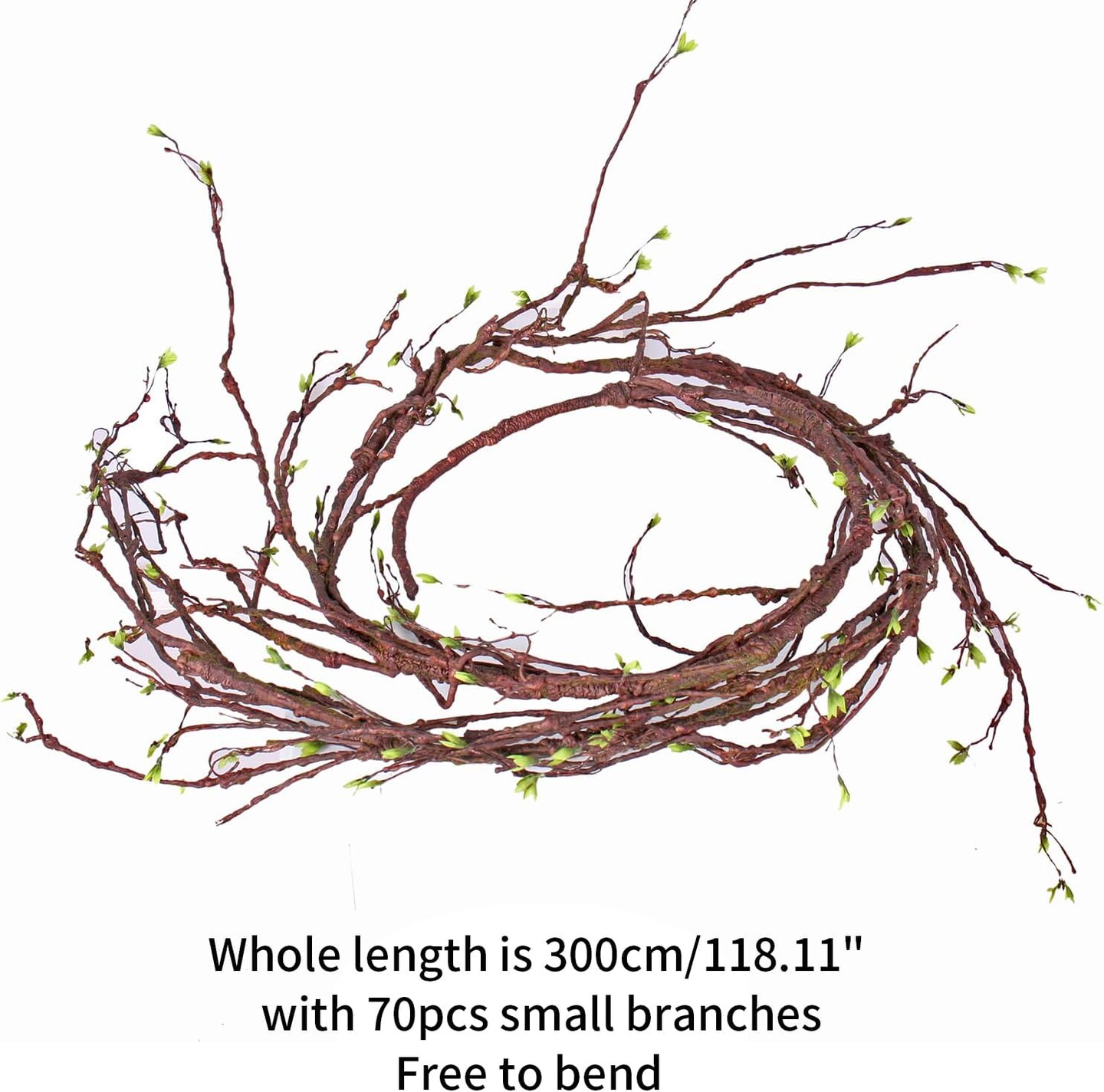 118 inch Malleable Artificial Floral Tree Branches Twigs Vines Rattan Cherry Blossom Trunk Ivy Grapevines Wall Fake Hanging Plants Willow Grapevine Garland for Wedding Arch Jungle Halloween Decoration