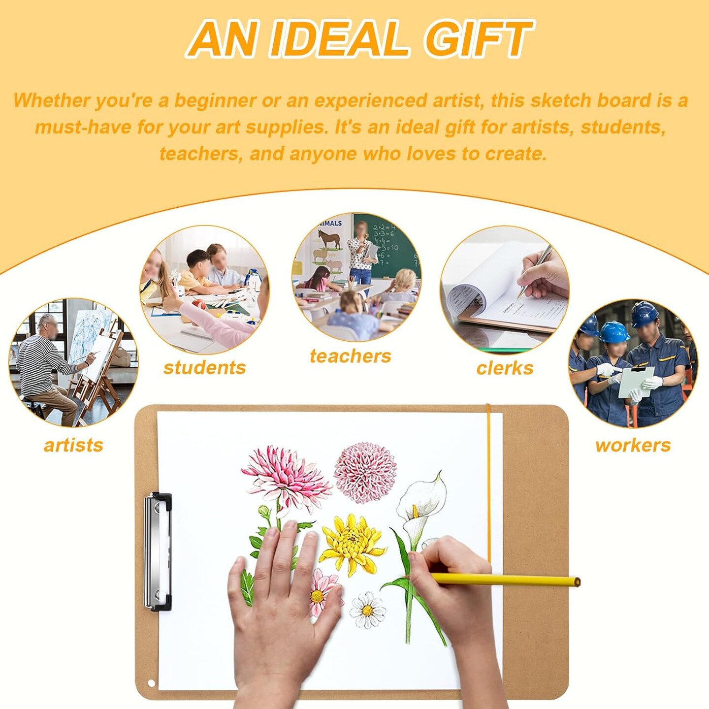 11.8×17.7 Drawing Board – Portable Sketch Clipboard with Clip & Rubber Bands for Studio & Classroom