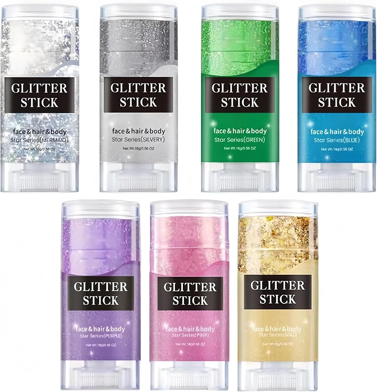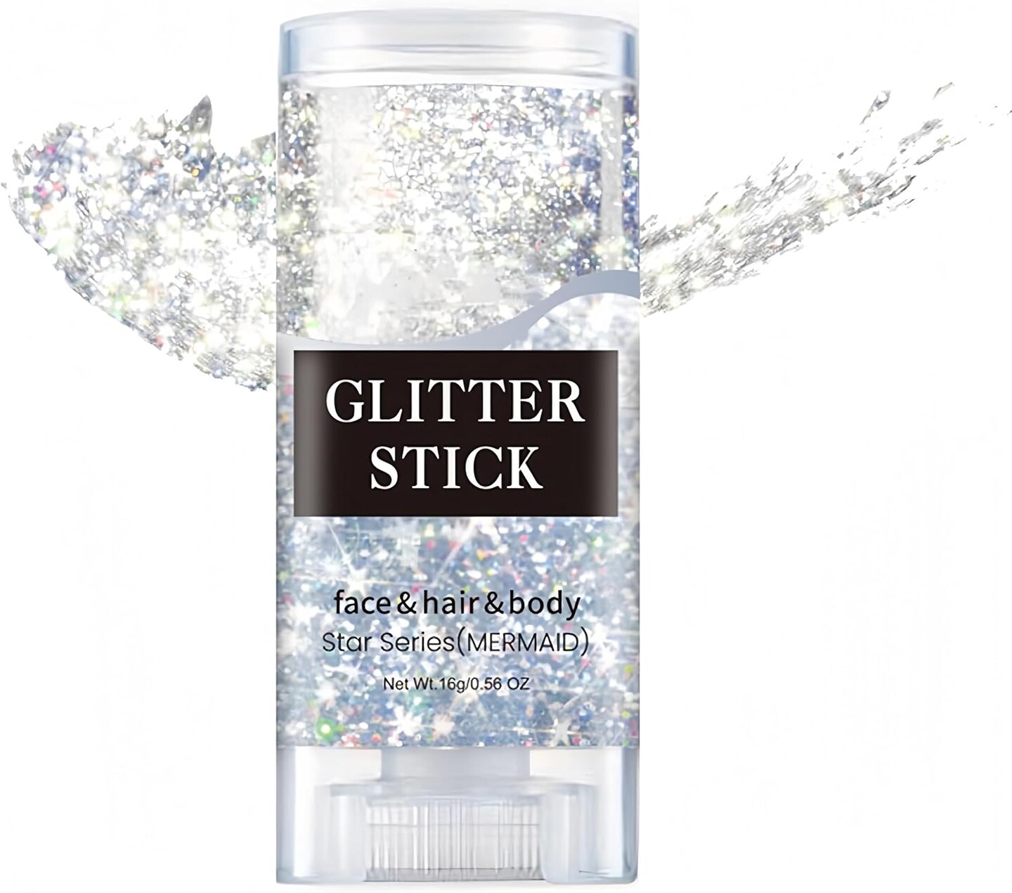 11-Color Holographic Mermaid Glitter Stick – Chunky Face & Body Glitter Gel for Hair, Eyes, Lips | Music Festival, Concert, Rave & Party Makeup