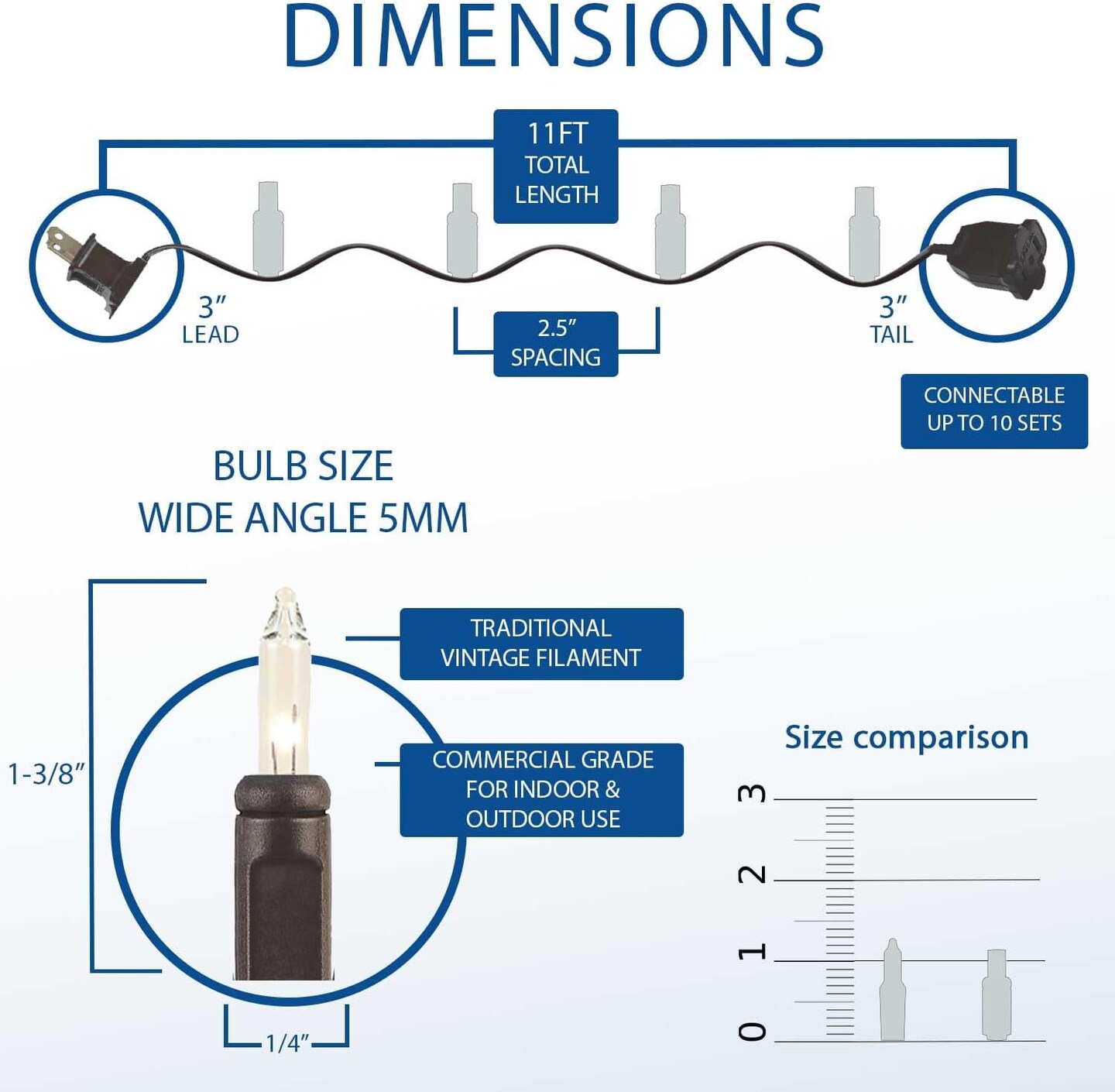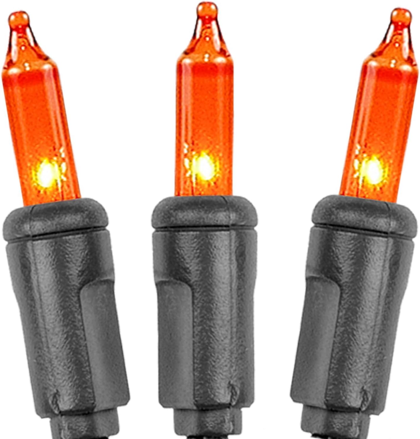 11ft Orange Mini Incandescent String Lights – 50 Bulbs on Black Wire, Commercial Grade, UL Listed, Indoor & Outdoor, End-to-End Connectable (Orange)