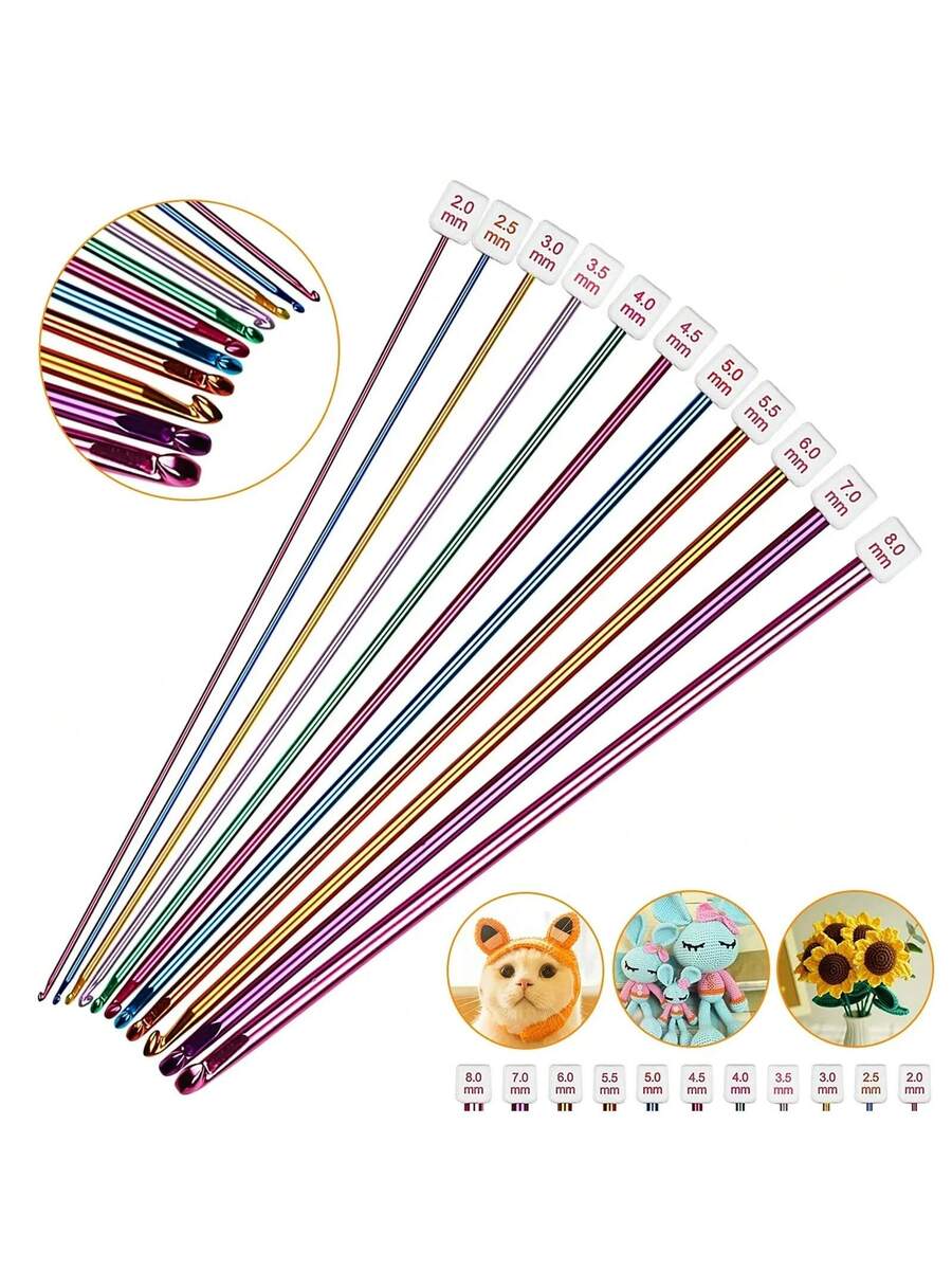 11pcs Crochet Hooks Set, Ergonomic Aluminum Knitting Needles with Comfort Grip