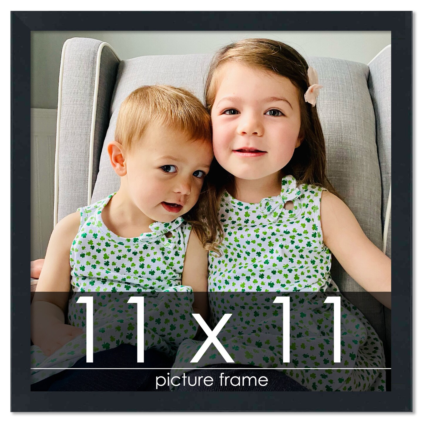 11x11 Slim Profile Black Picture Frame - UV Acrylic, Foam Board Backing, Hanging Hardware