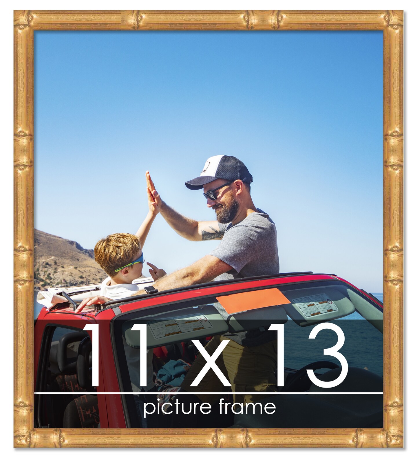 11x13 Thin Bamboo Picture Frame with UV-Resistant Acrylic & Acid Free Backing, Available in 2 Finishes - Gold and Brown