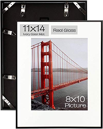 11x14 Aluminum Frame, 8x10 Photo with Ivory Mat for Wall Display, Sawtooth Hanger, Swivel Tabs, Spring Clips Great for Photos, Artworks, Posters (Black, 1-Pack)