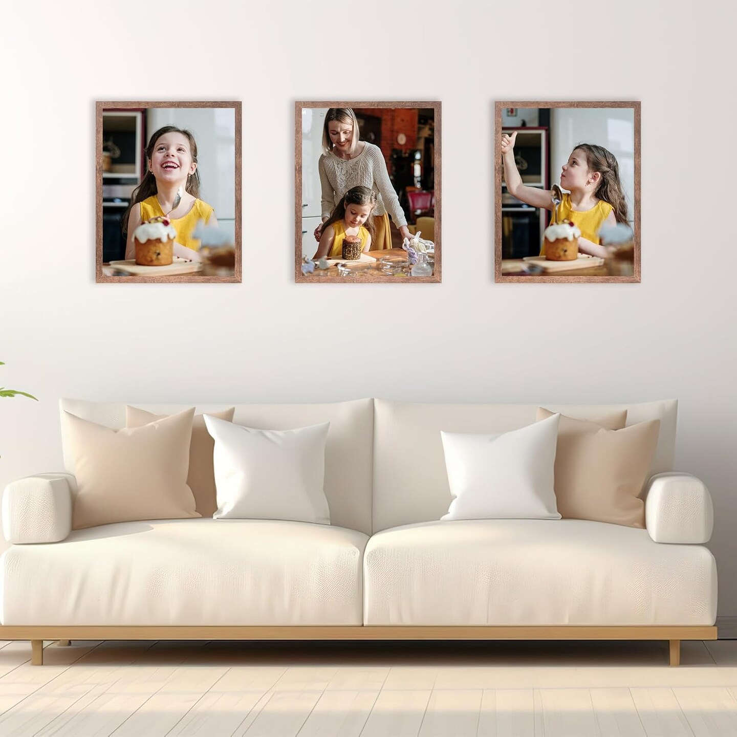 11x14 Picture Frame Rotten Brown, Wooden Poster Frame with white mat, 14x11 Picture Frames for Wall Mounting Display for Home, Office,Gallery,Holiday with Photos, Posters