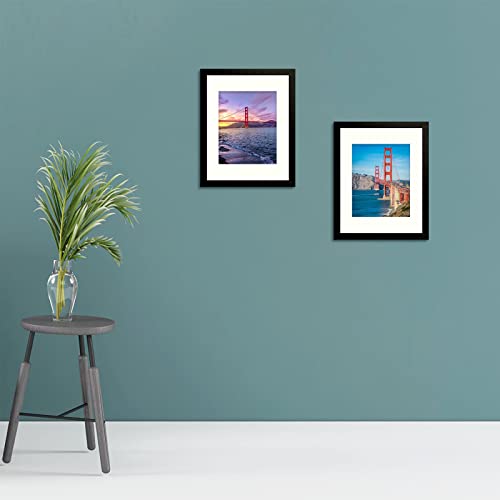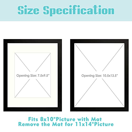 11x14 Picture Frame with Mat for 8x10 Photo - High Definition Glass Wide Molding - Preinstalled Wall Mounting Hardware (Black, 1 Pack)