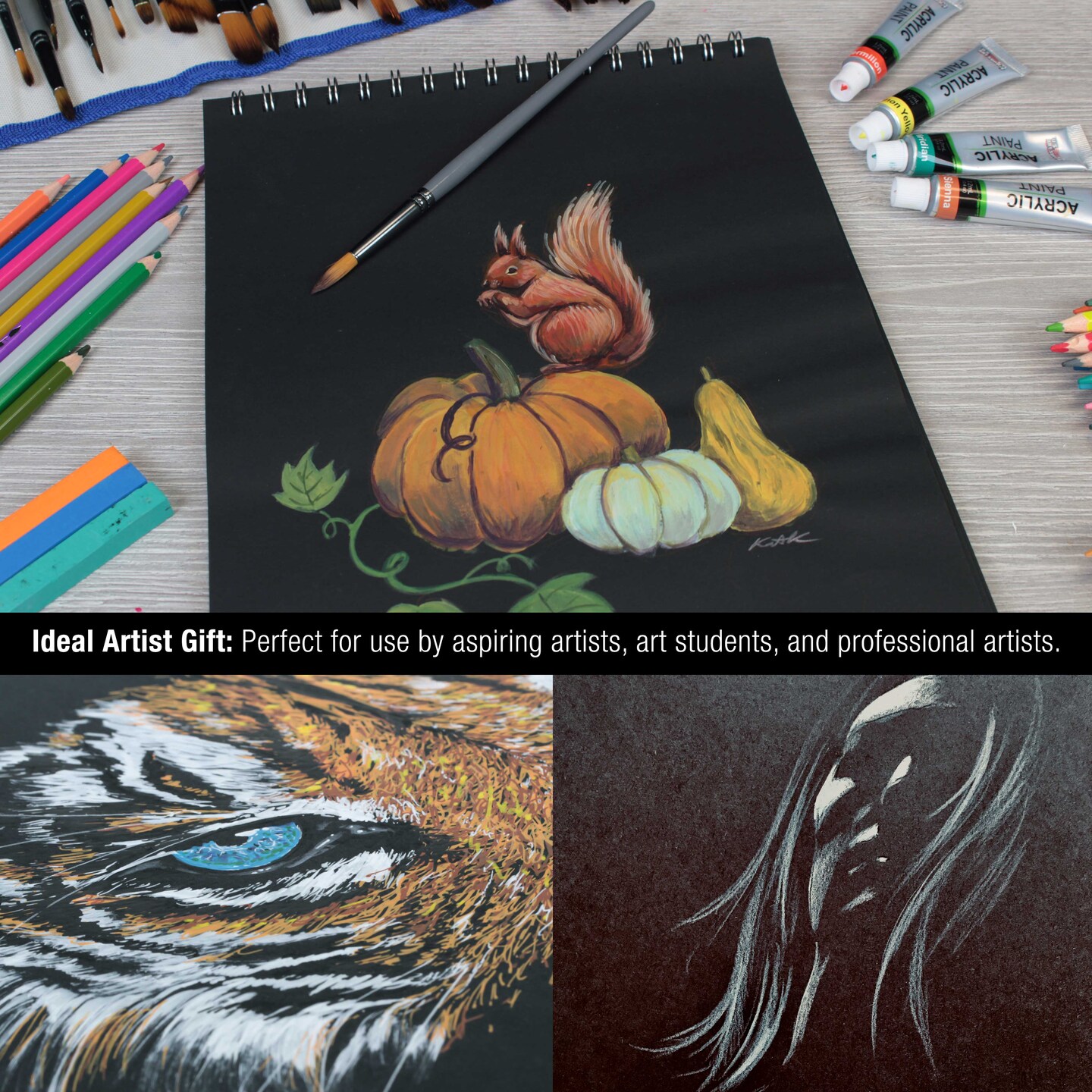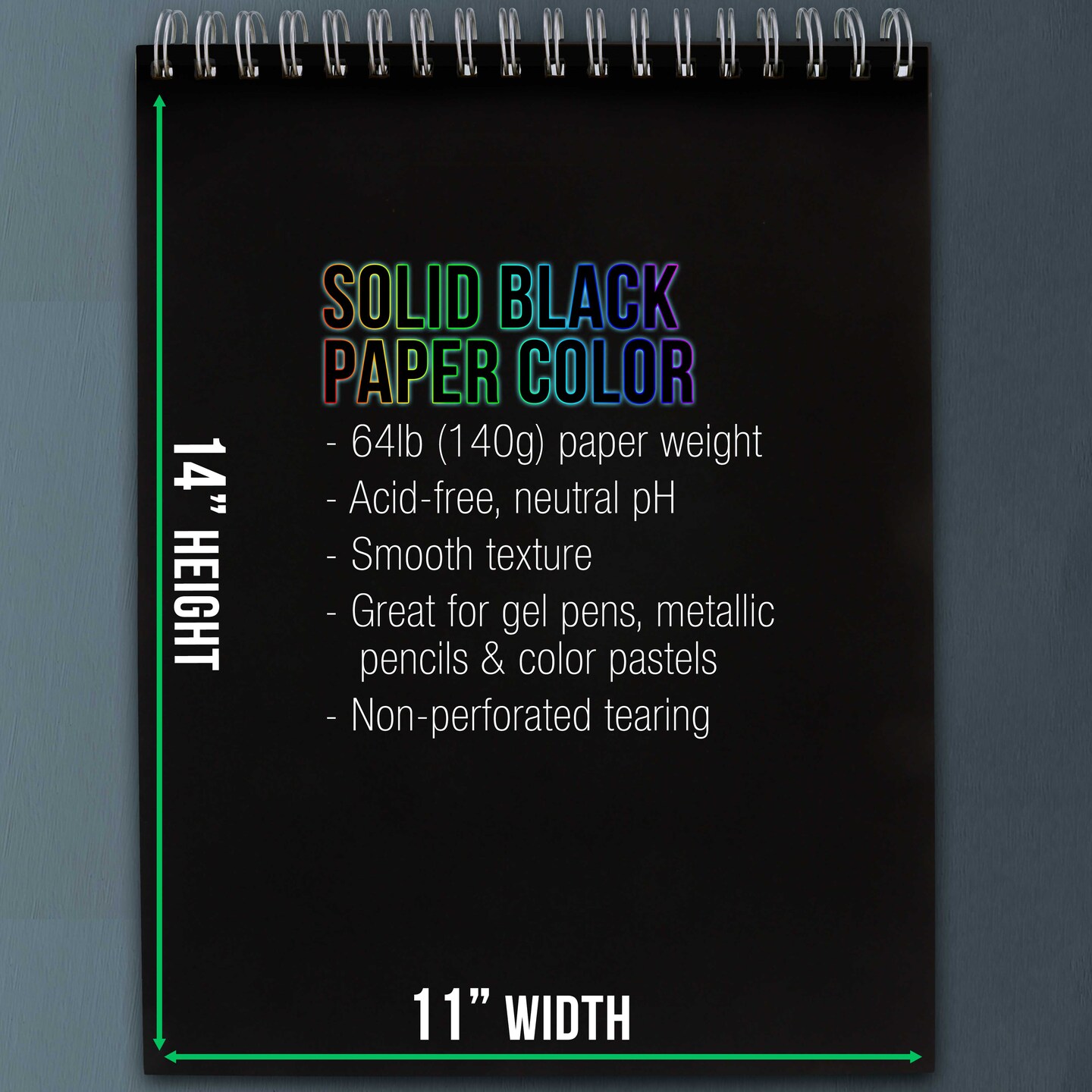 11x14" Premium Heavy-Weight Black Paper Sketchbook, 64lb (140gsm), 2 Pack, 30 Sheets, Spiral Bound, Black Paper Notebook for Colored Pencil, Markers, Oil Pastels, Chalk, Charcoal