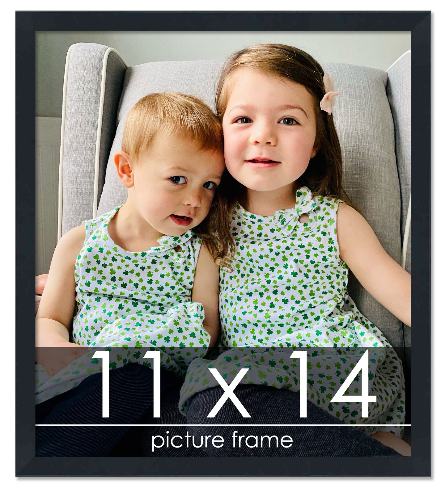 11x14 Slim Profile Black Picture Frame - UV Acrylic, Foam Board Backing, Hanging Hardware