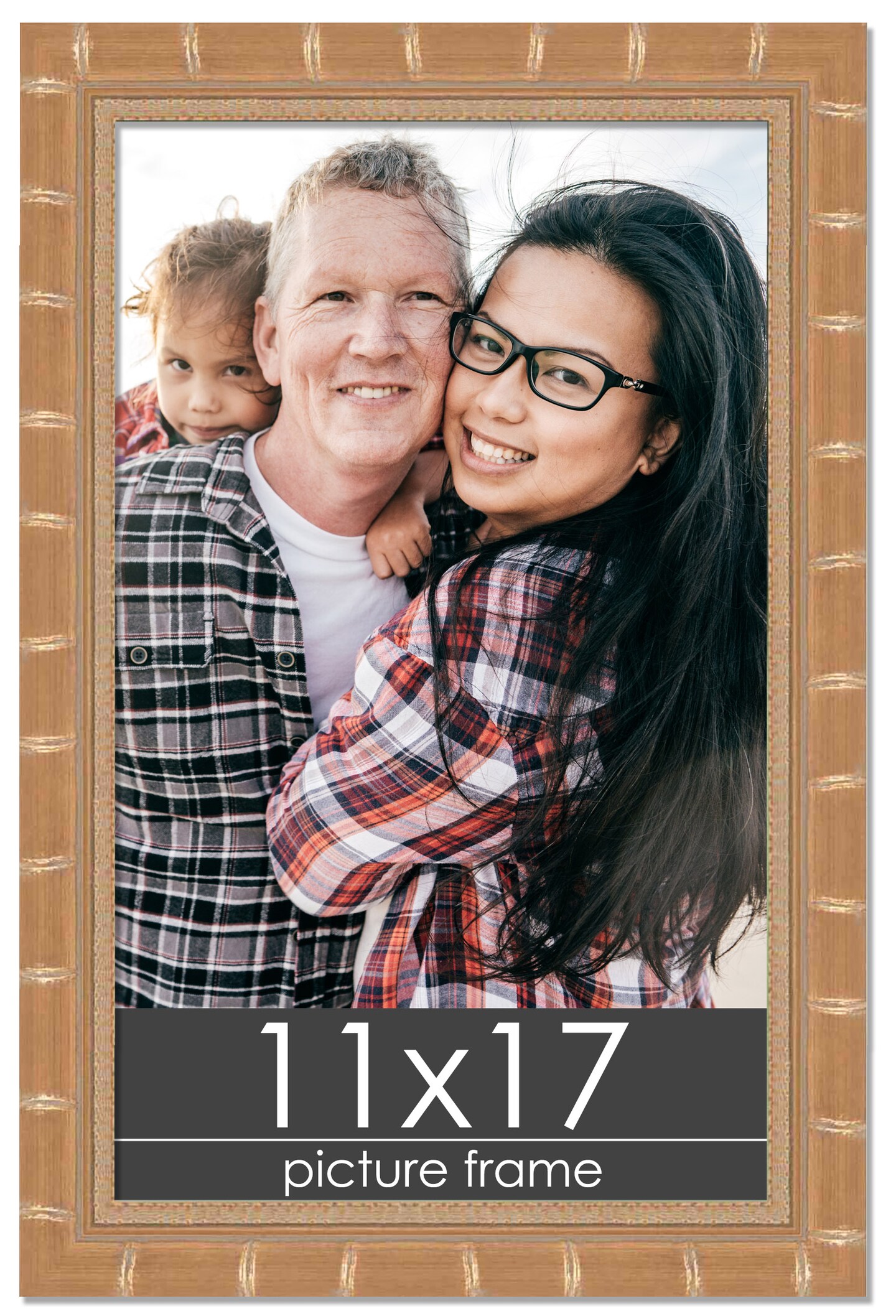 11x17 Modern Bamboo Picture Frame with UV-Resistant Acrylic & Acid Free Backing, Available in 5 Finishes - Gold, Silver, Brown, Black, and Natural