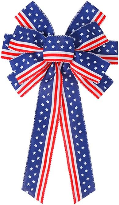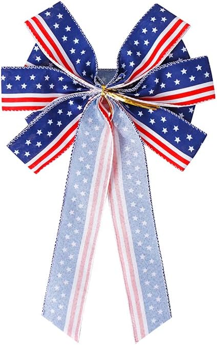 (11x20 inch) - 4th of July Decorations Patriotic Wreath Bow Red White Blue