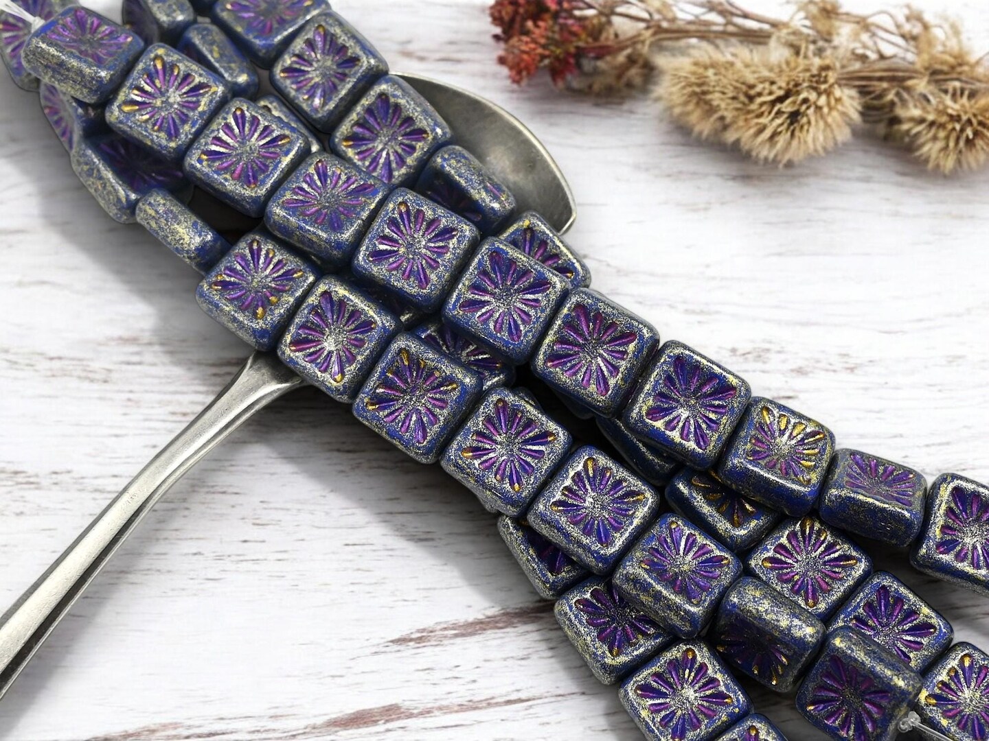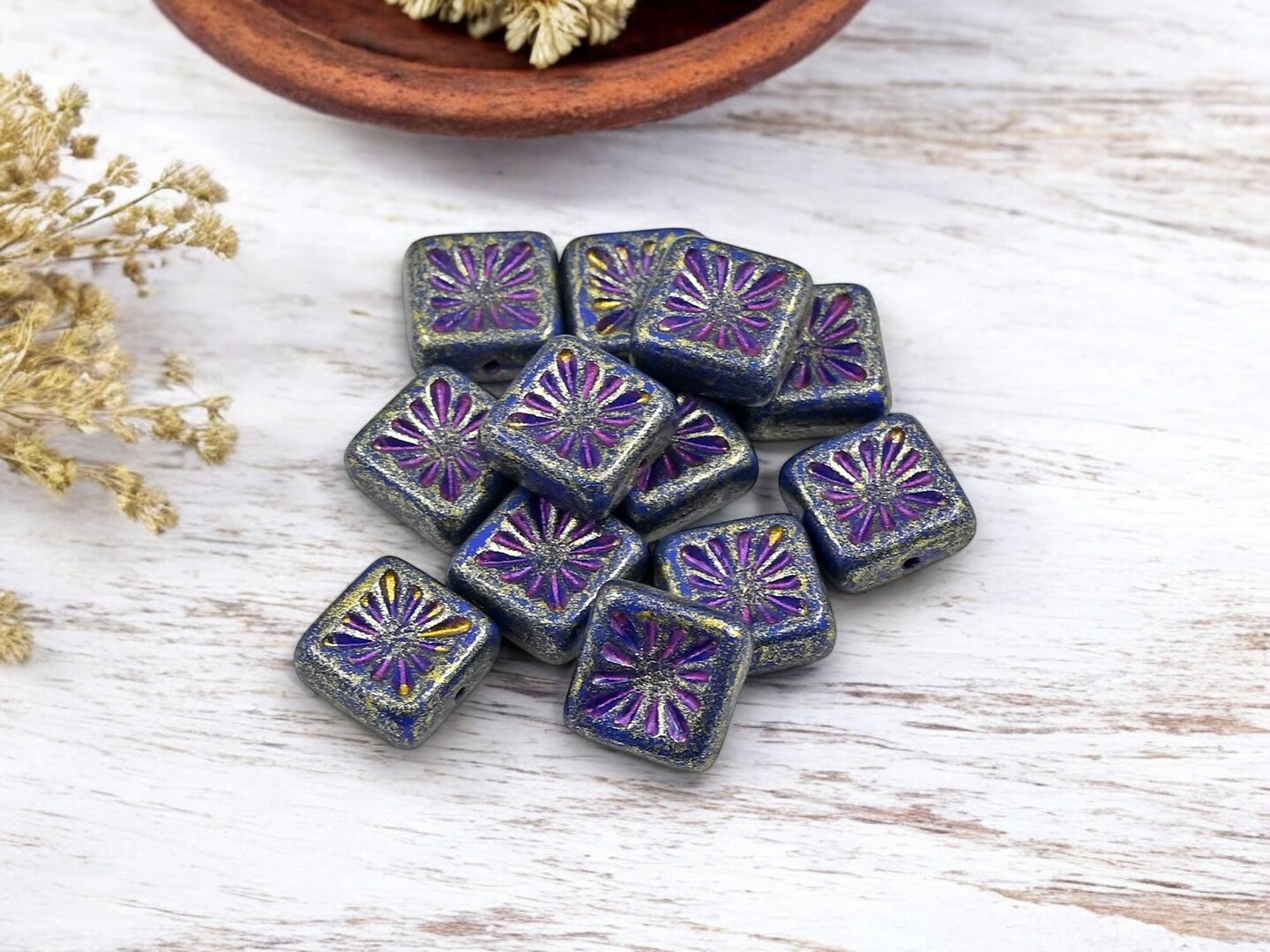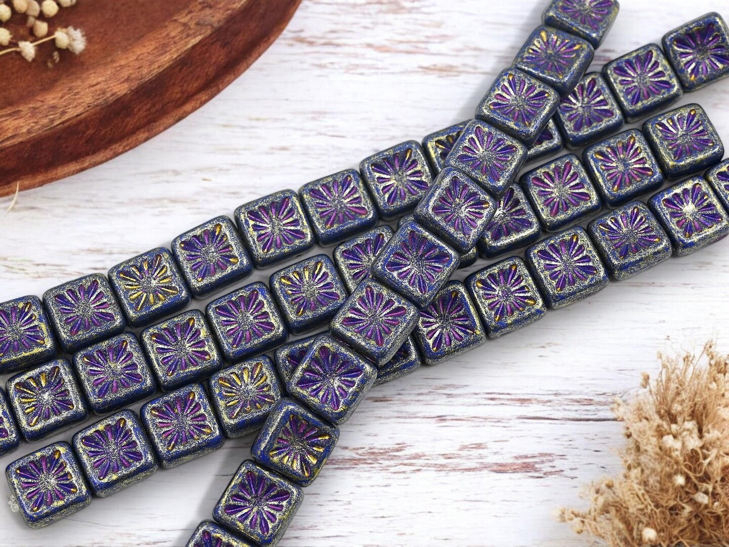 *12* 10mm Metallic Purple Washed Cobalt Blue Starburst Square Beads