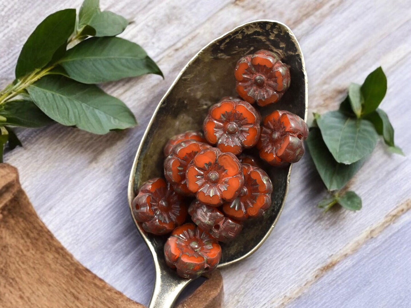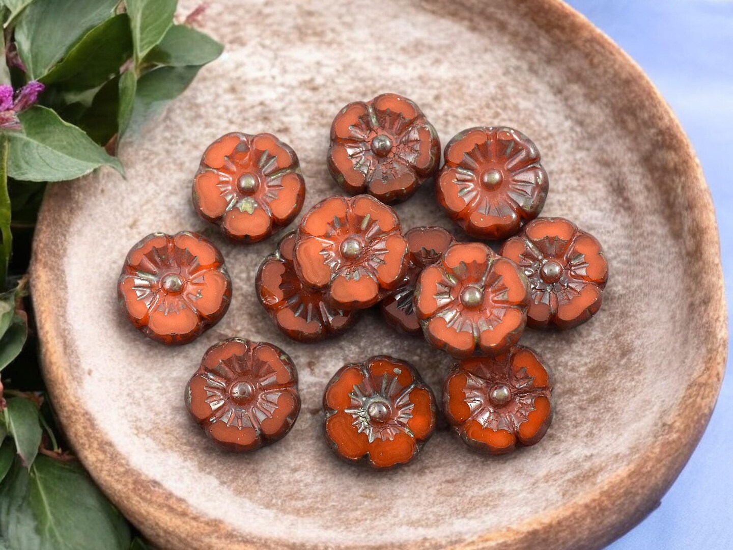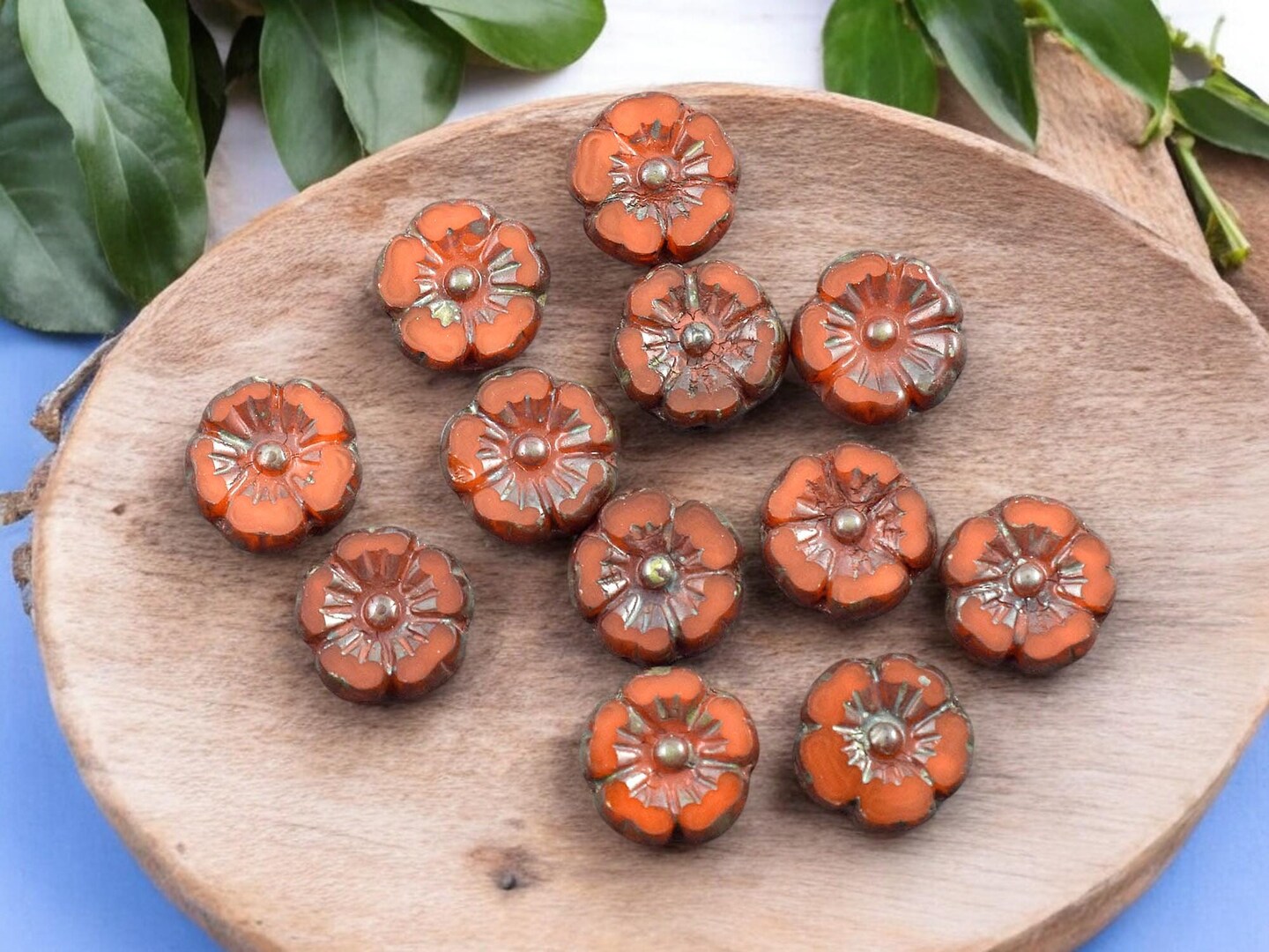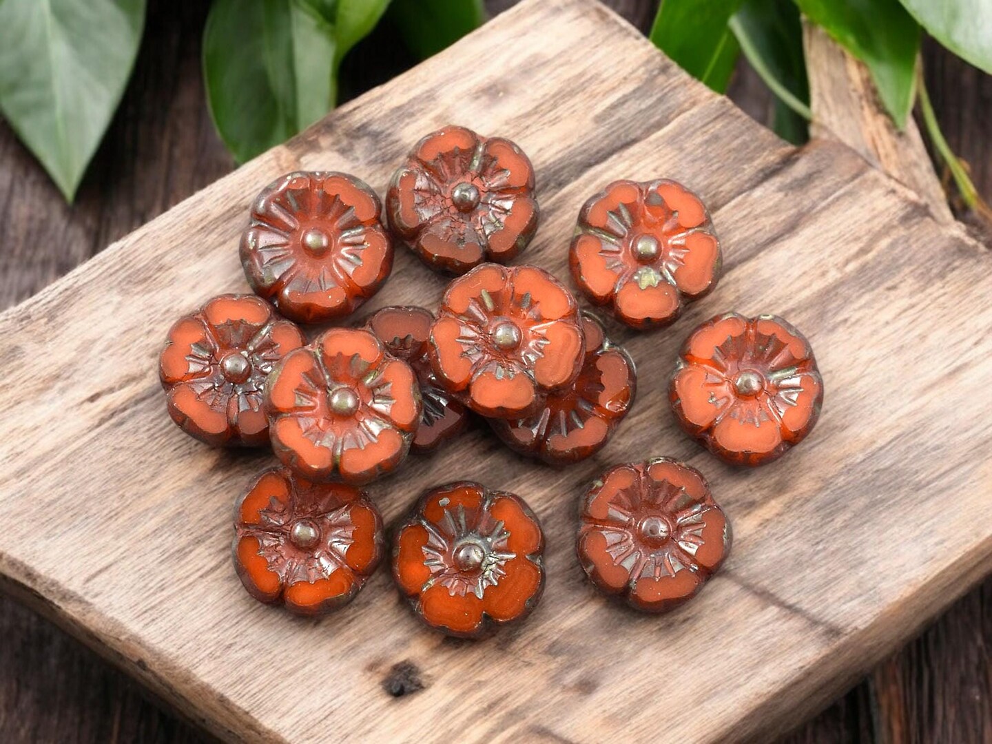 *12* 10mm Orange Opaline Picasso Hawaiian Flower Beads