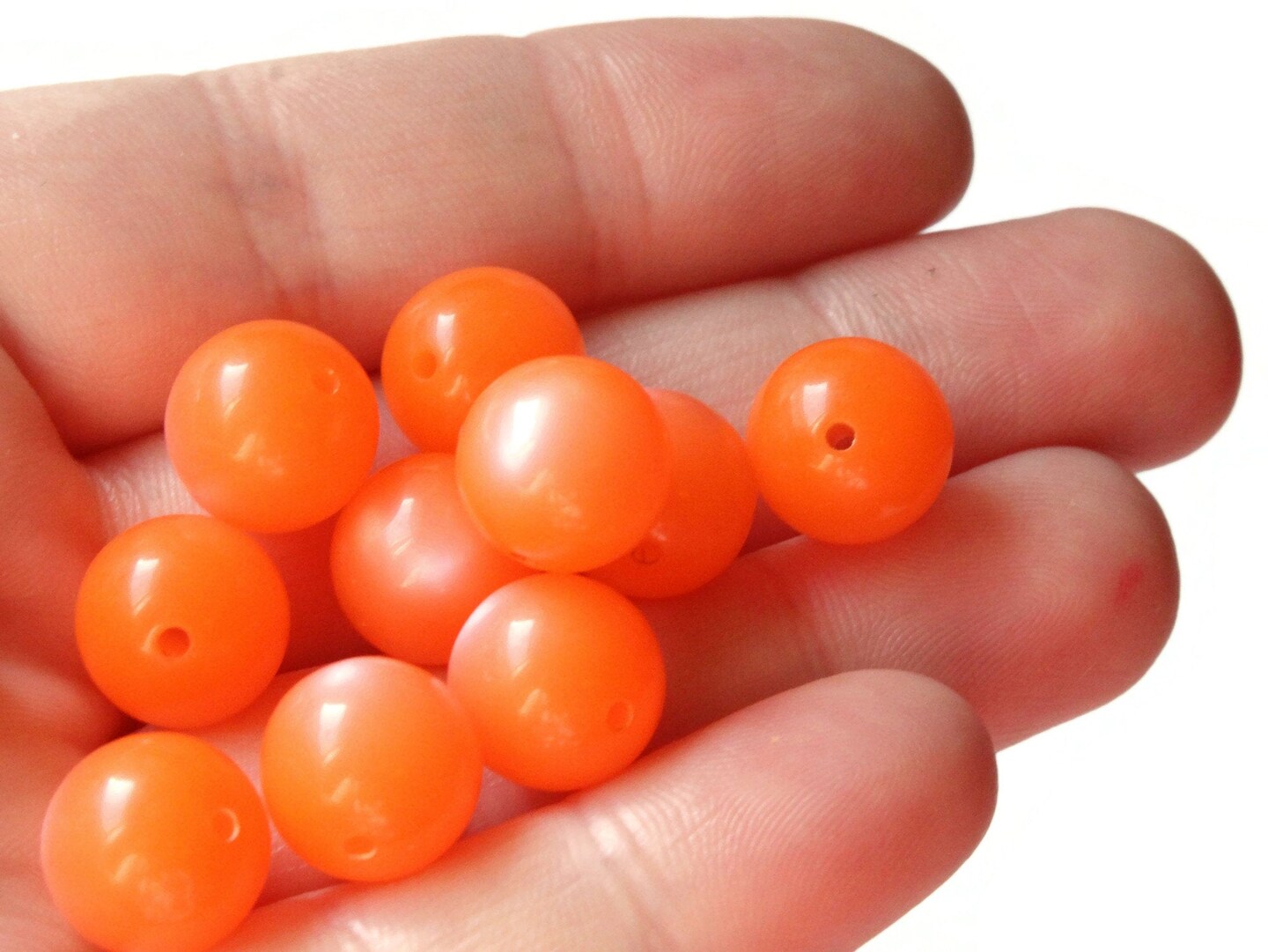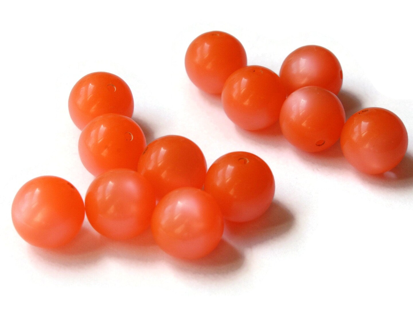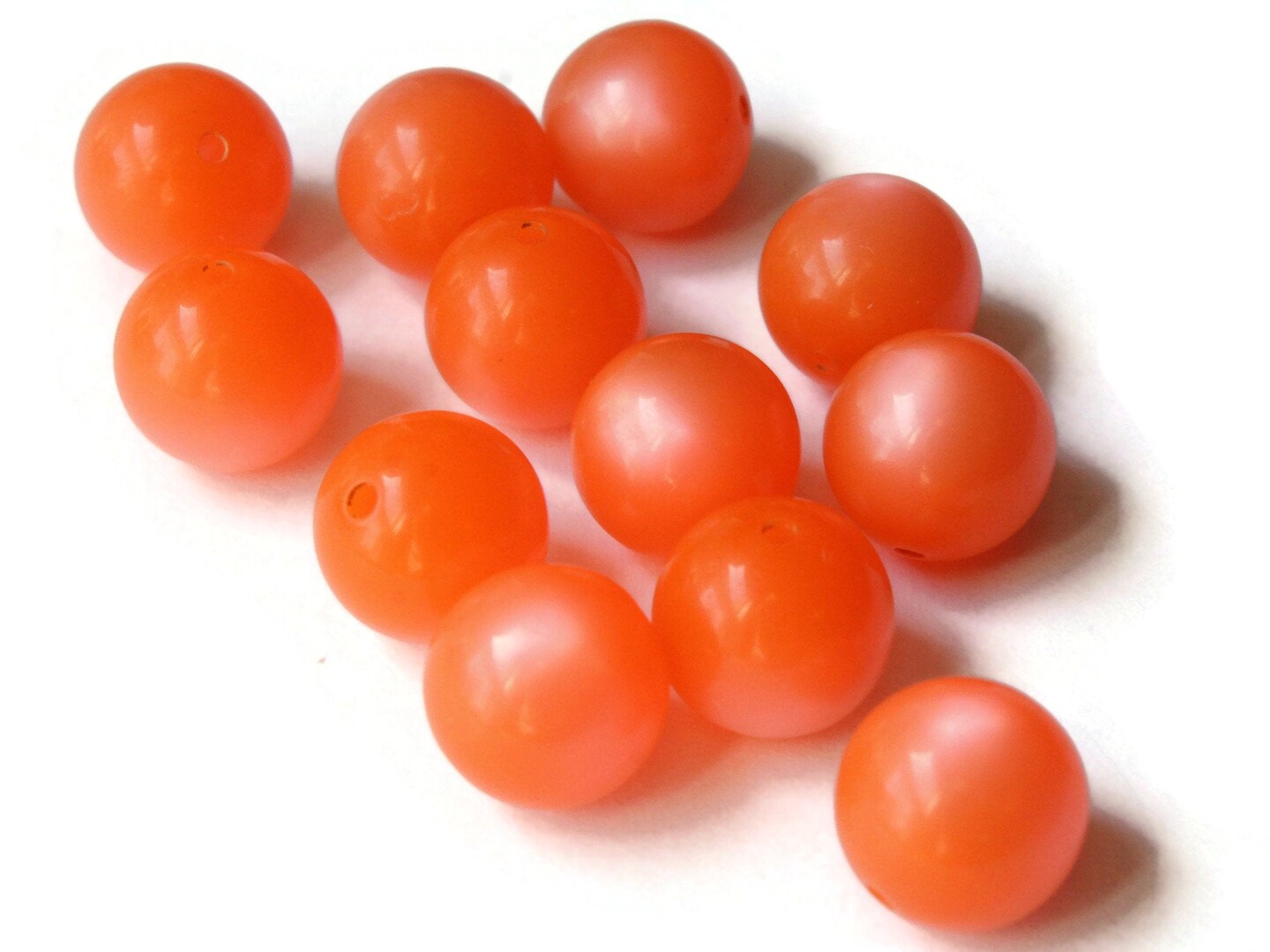 12 11mm Vintage Moonglow Lucite Round Orange Beads