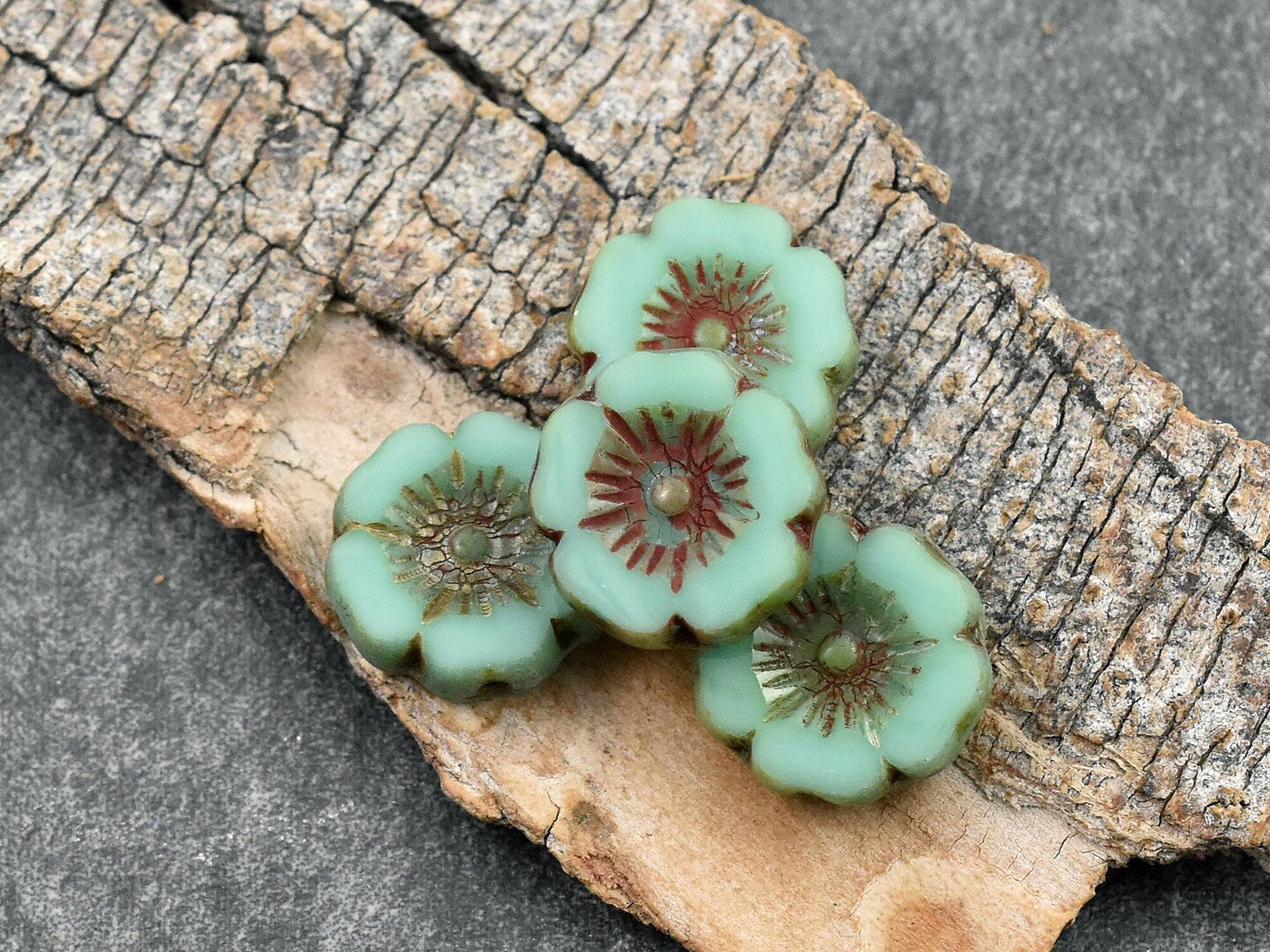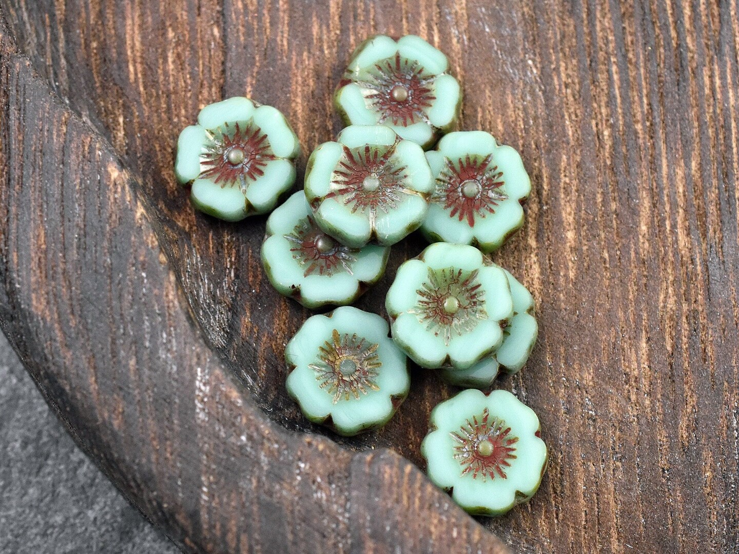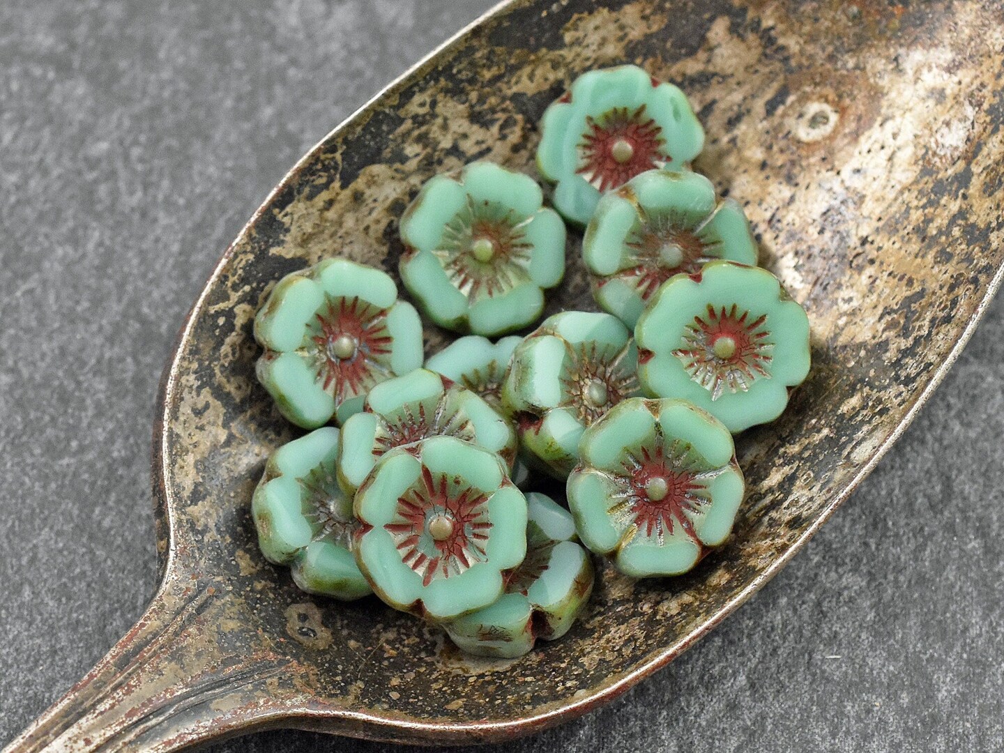 *12* 12mm Opaque Turquoise Picasso Hawaiian Flower Beads