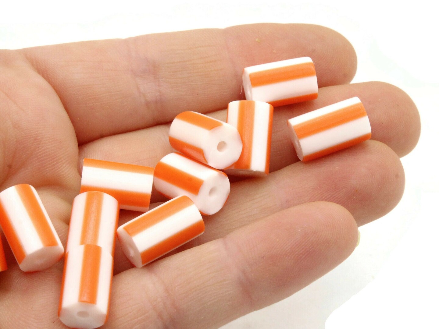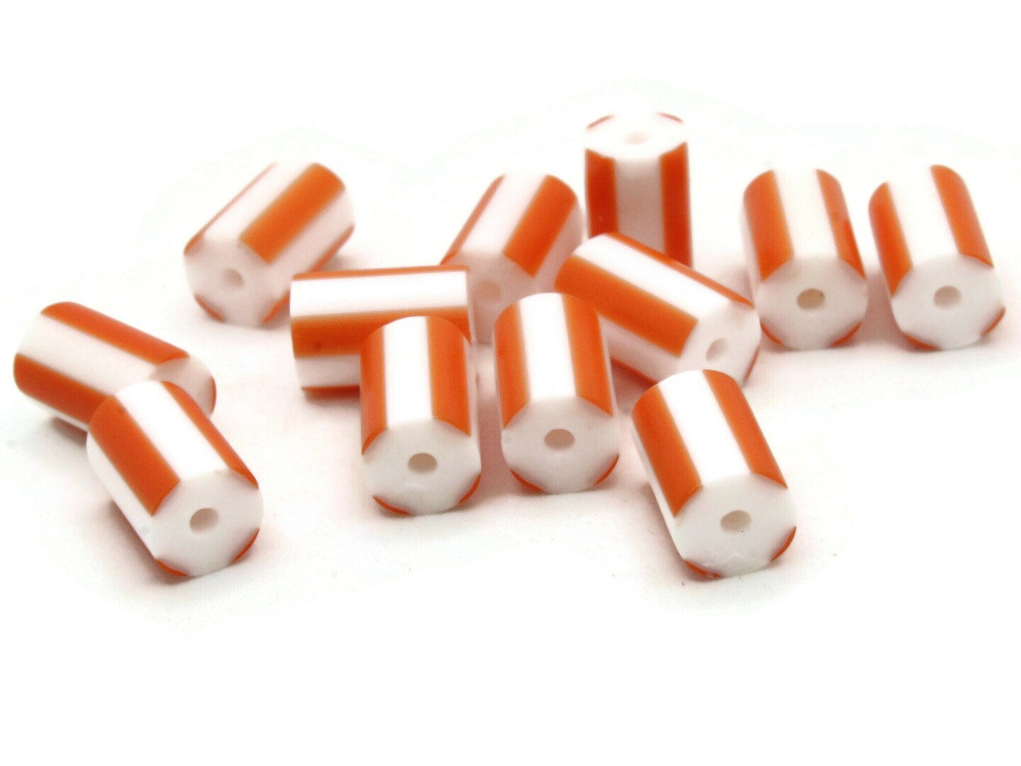 12 12mm to 14mm Orange and White Striped Vintage Plastic Tube Beads