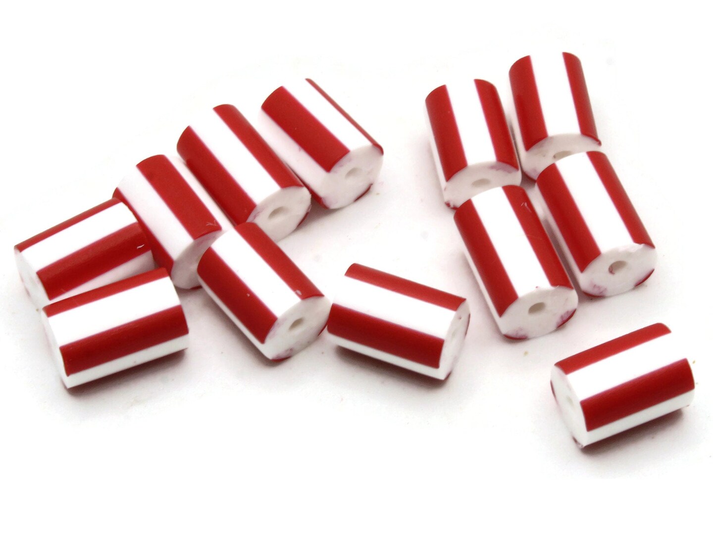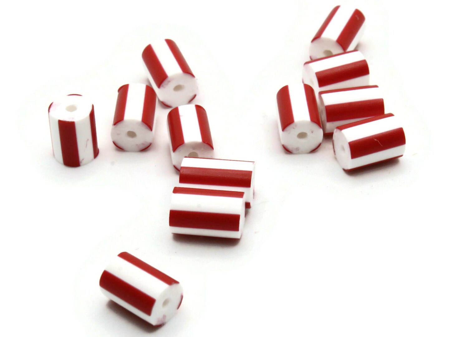 12 12mm to 14mm Red and White Striped Vintage Plastic Tube Beads