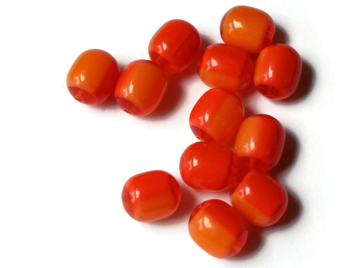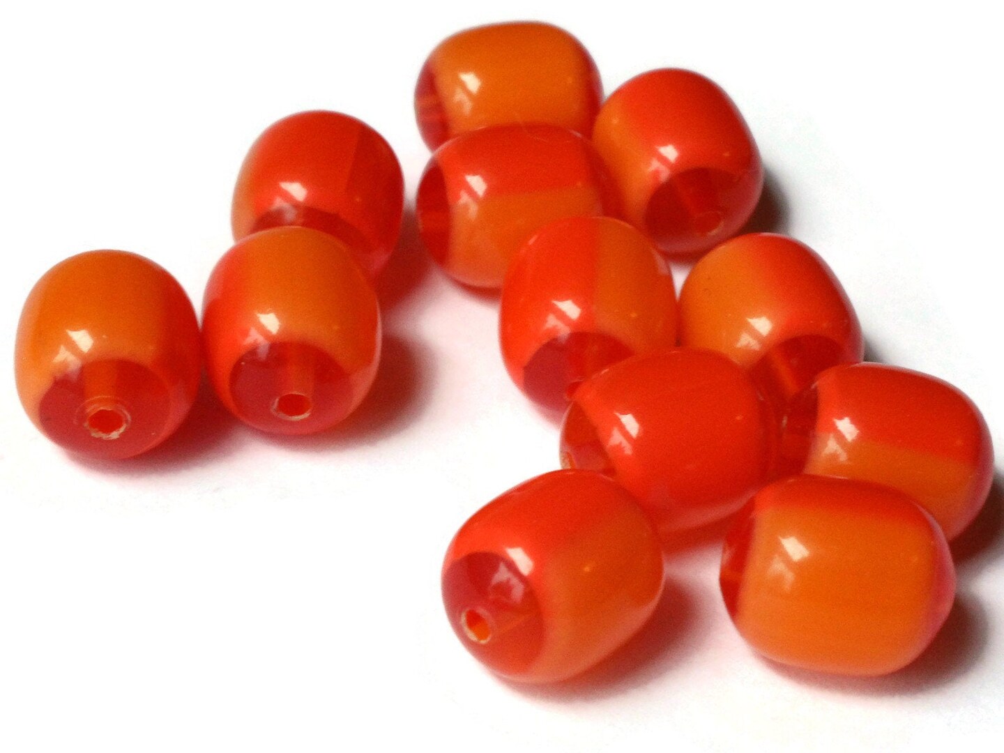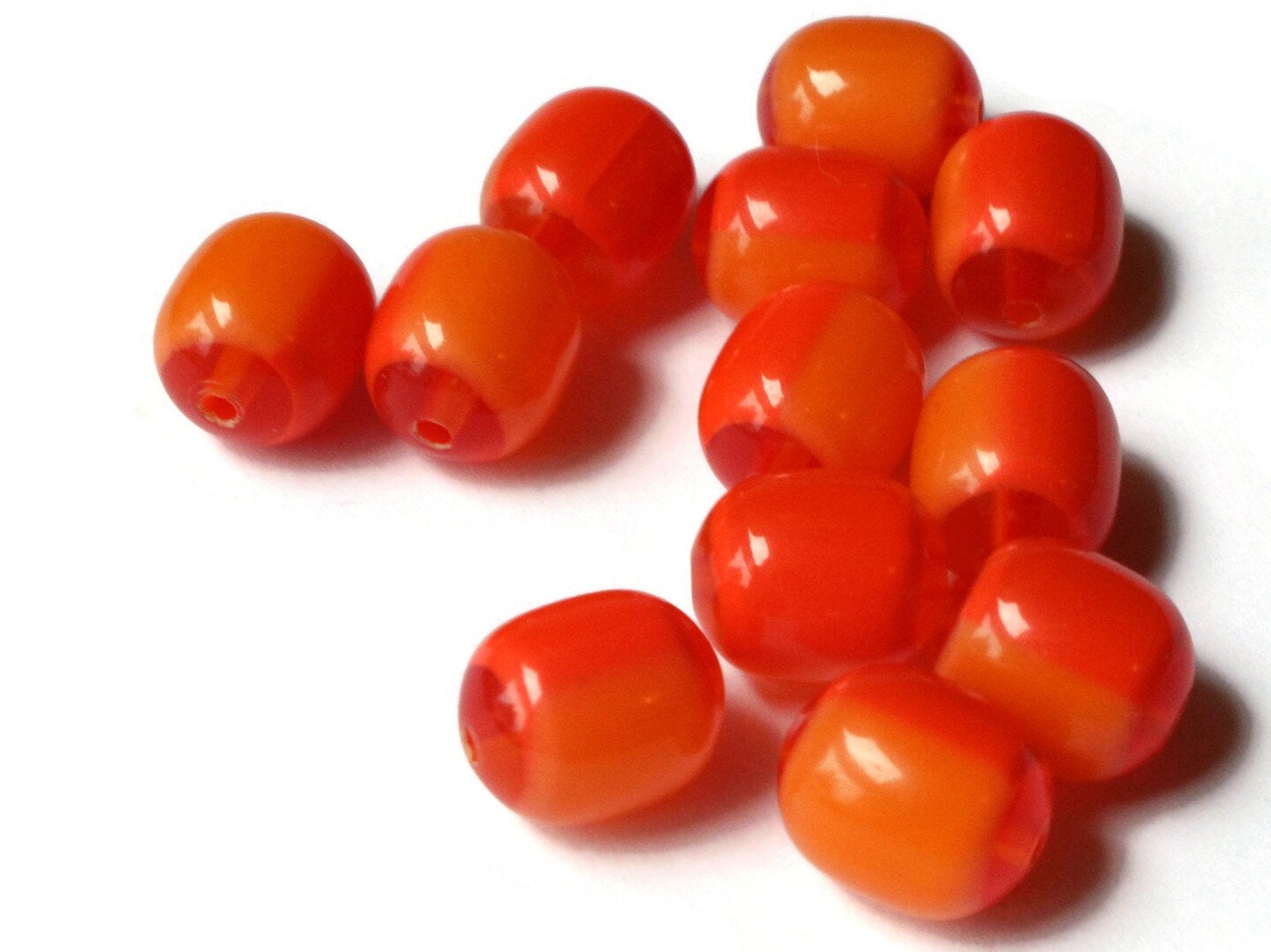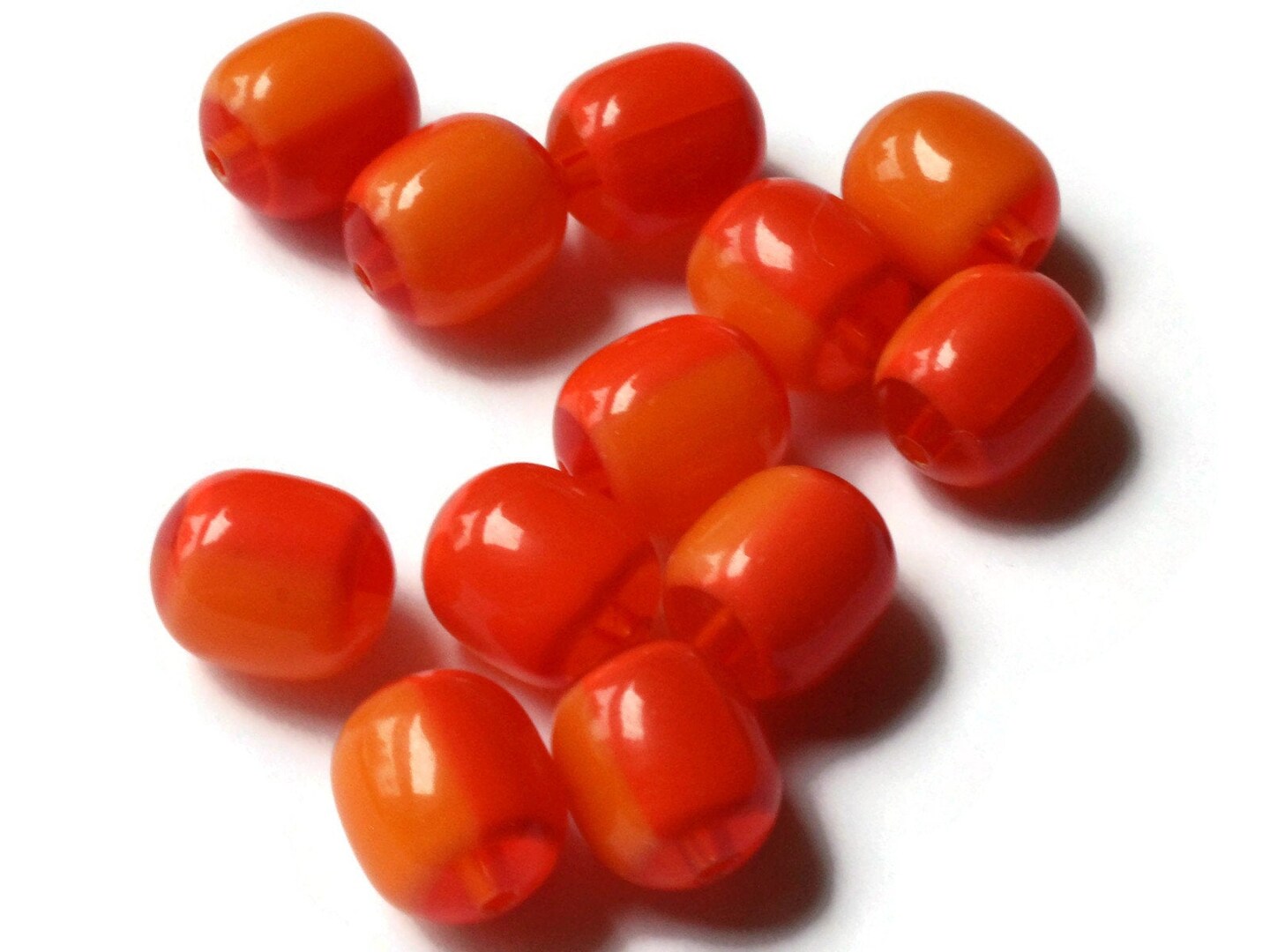 12 12mm x 10mm Red and Orange Vintage Lucite Barrel Beads Two Tone Plastic Beads