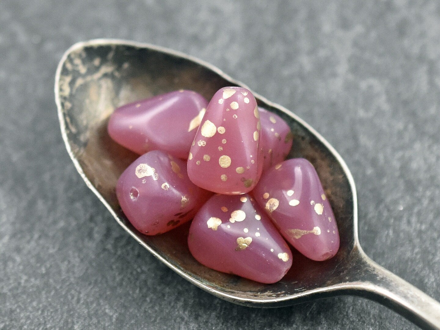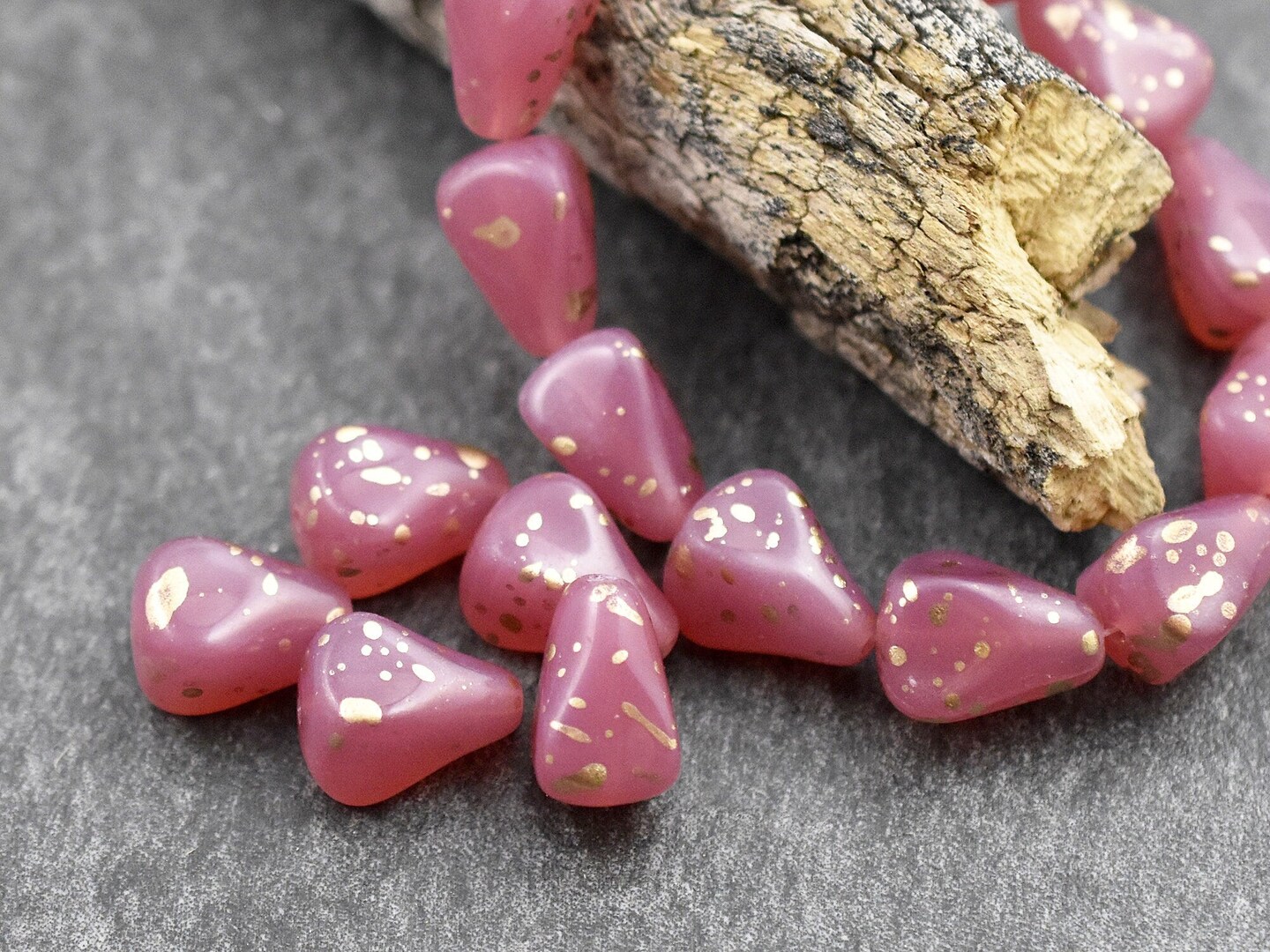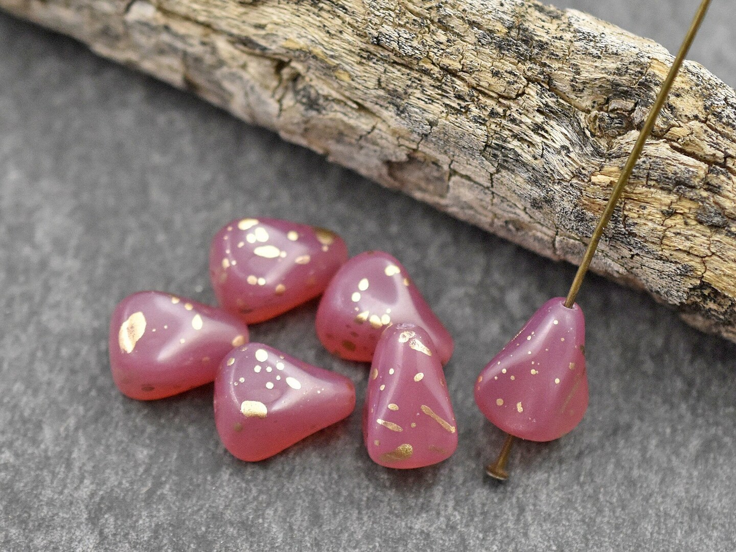 *12* 13x12mm Antique Gold Washed Pink Opaline Vintage Style Drop Beads