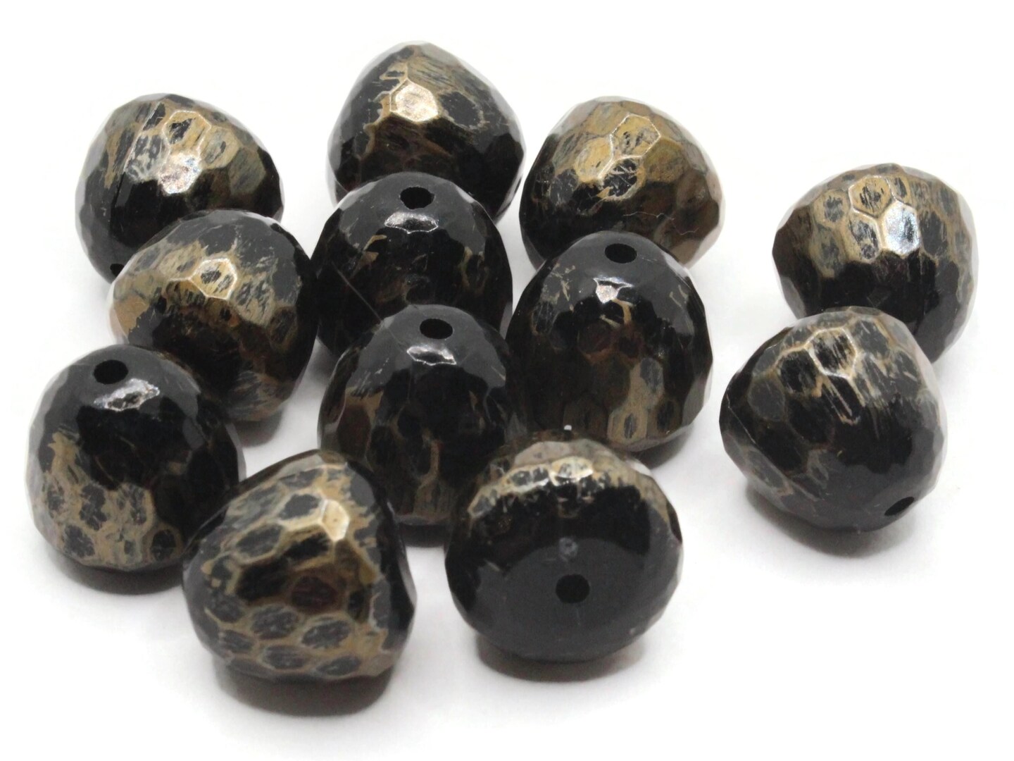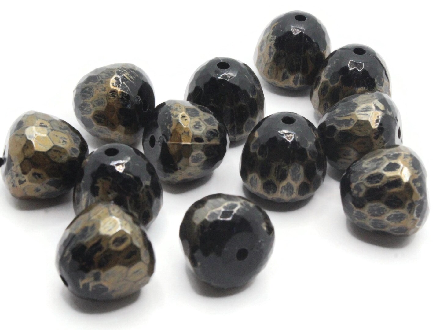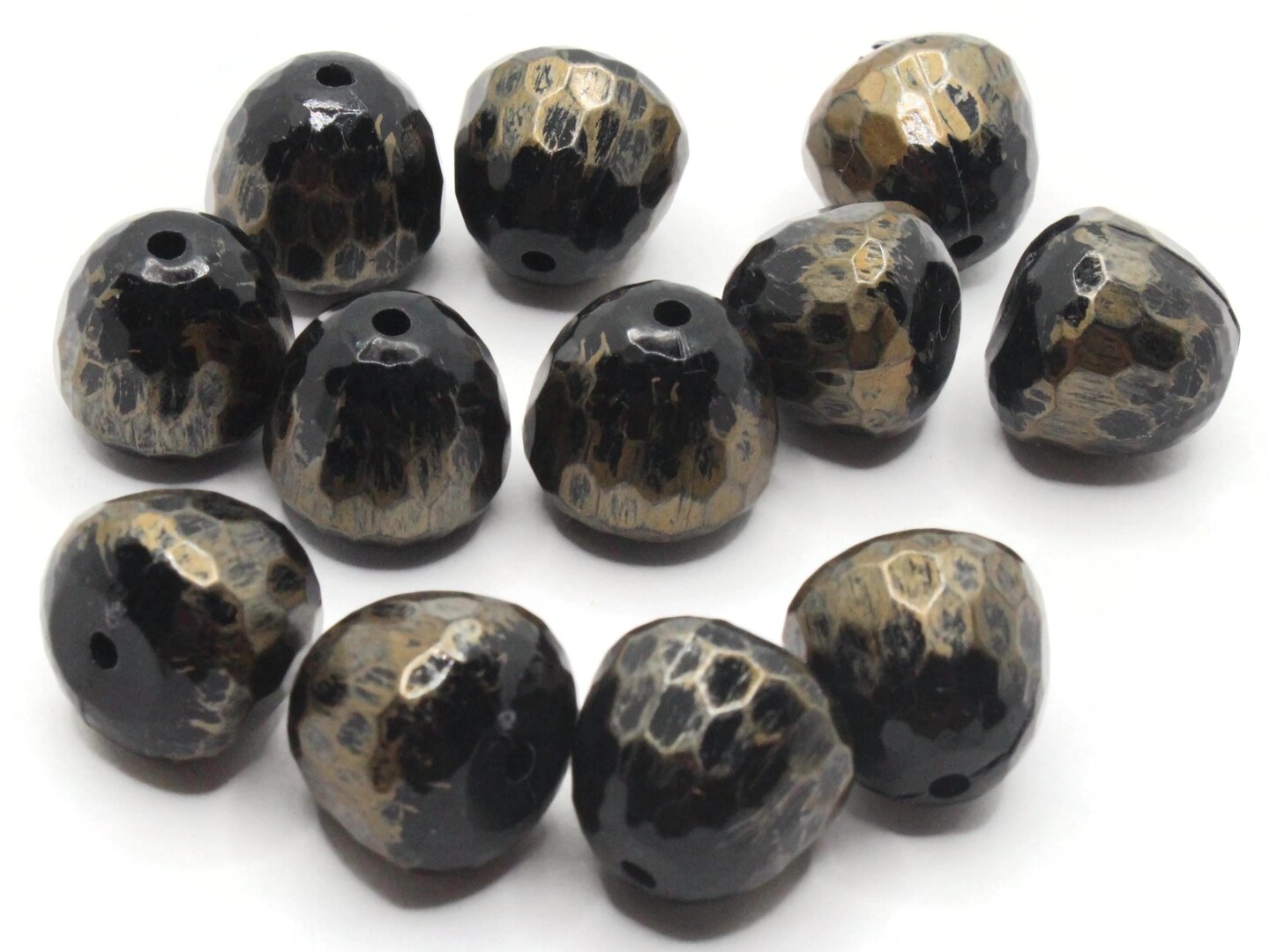 12 15mm Brass Tone Metallic Faceted Gumdrop Vintage Lucite Beads