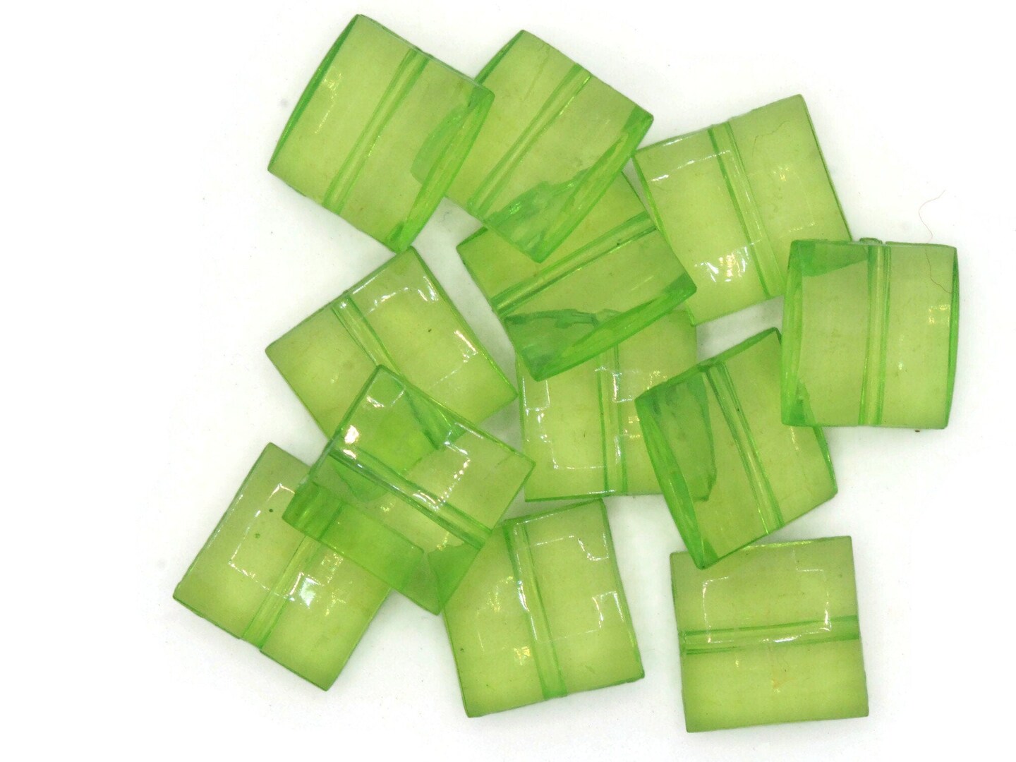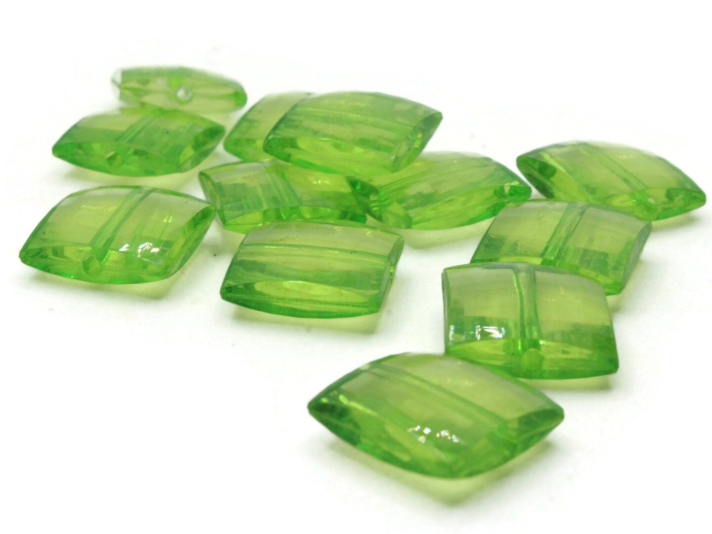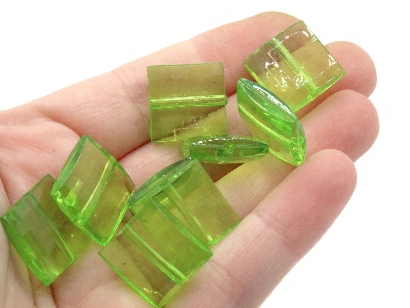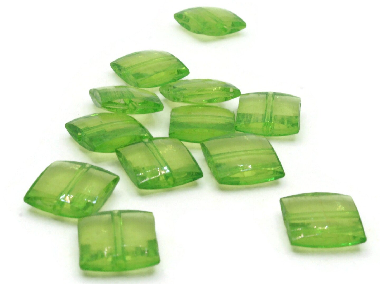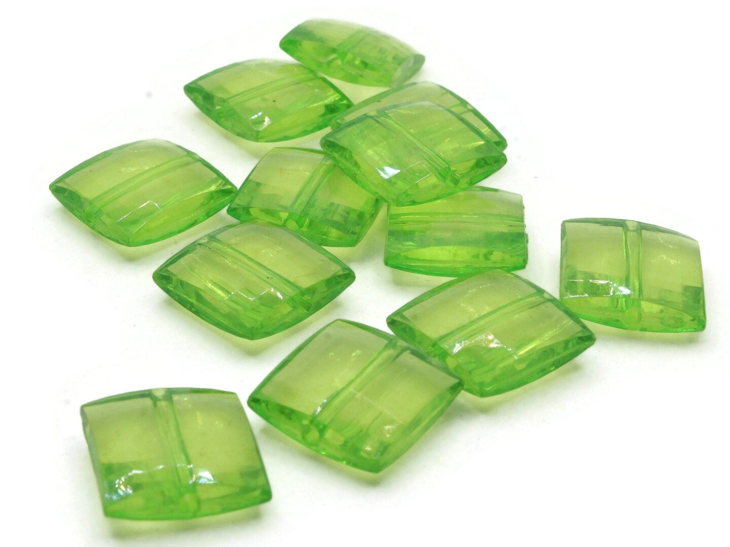 12 16mm Green Acrylic Gems Faceted Square Jewel Beads