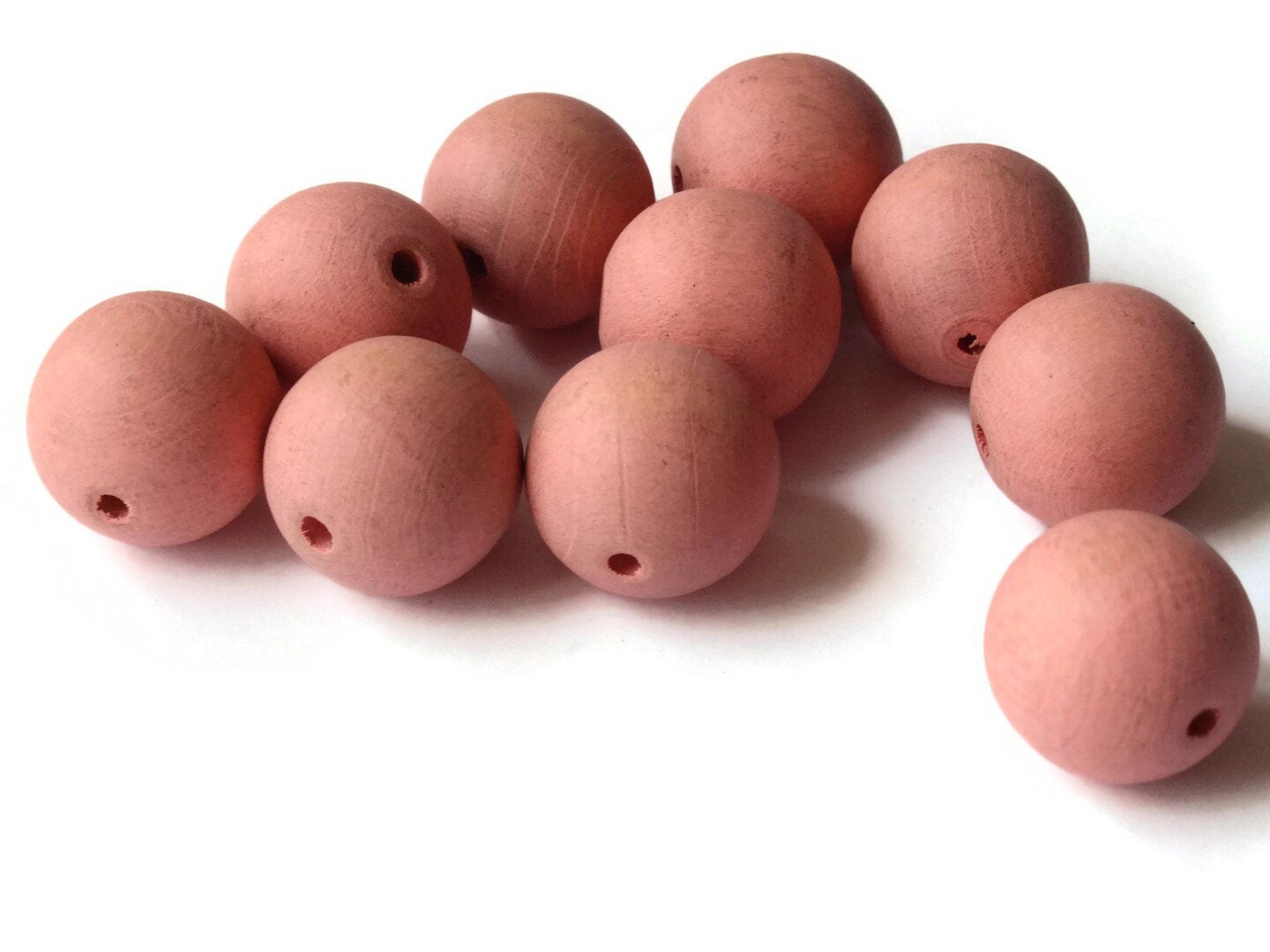 12 18mm Pink Round Wood Beads Loose Wooden Beads Vintage New Old Stock Beads