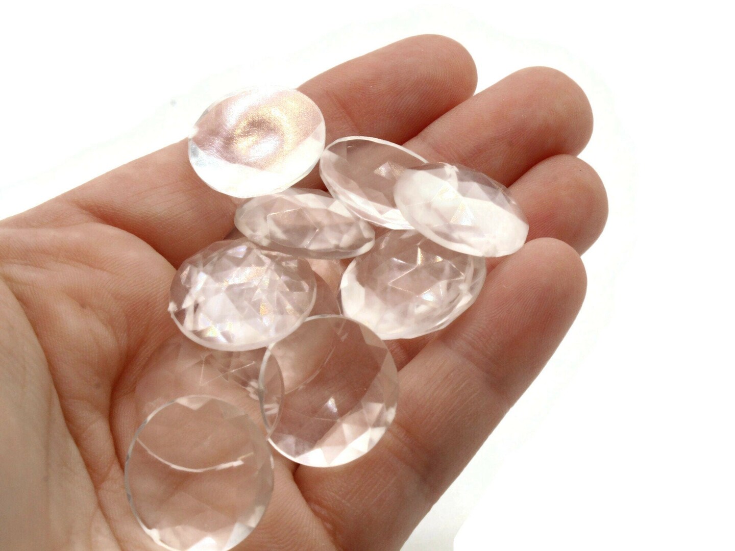 12 19mm Faceted Round Clear Vintage West Germany Plastic Cabochons