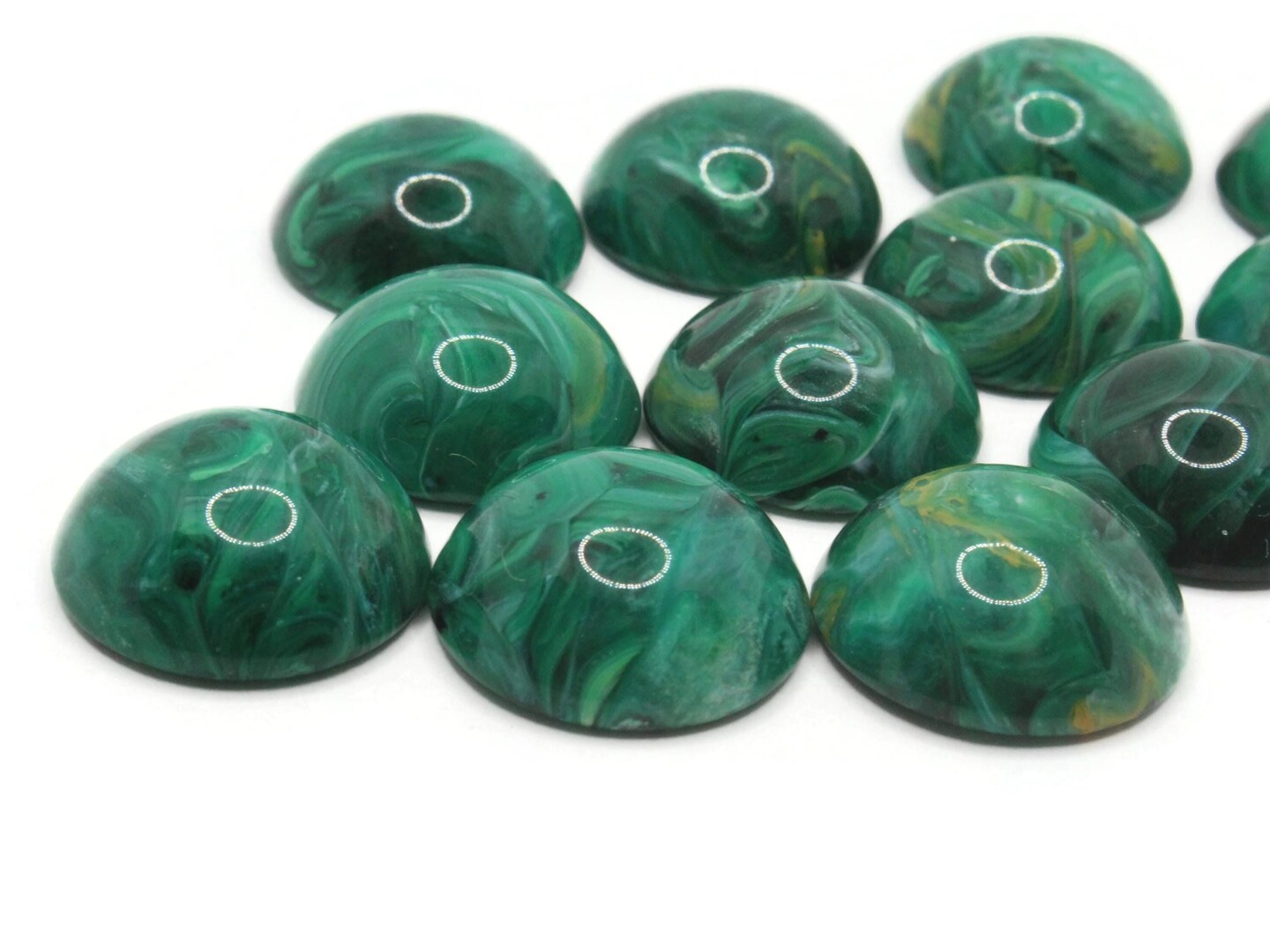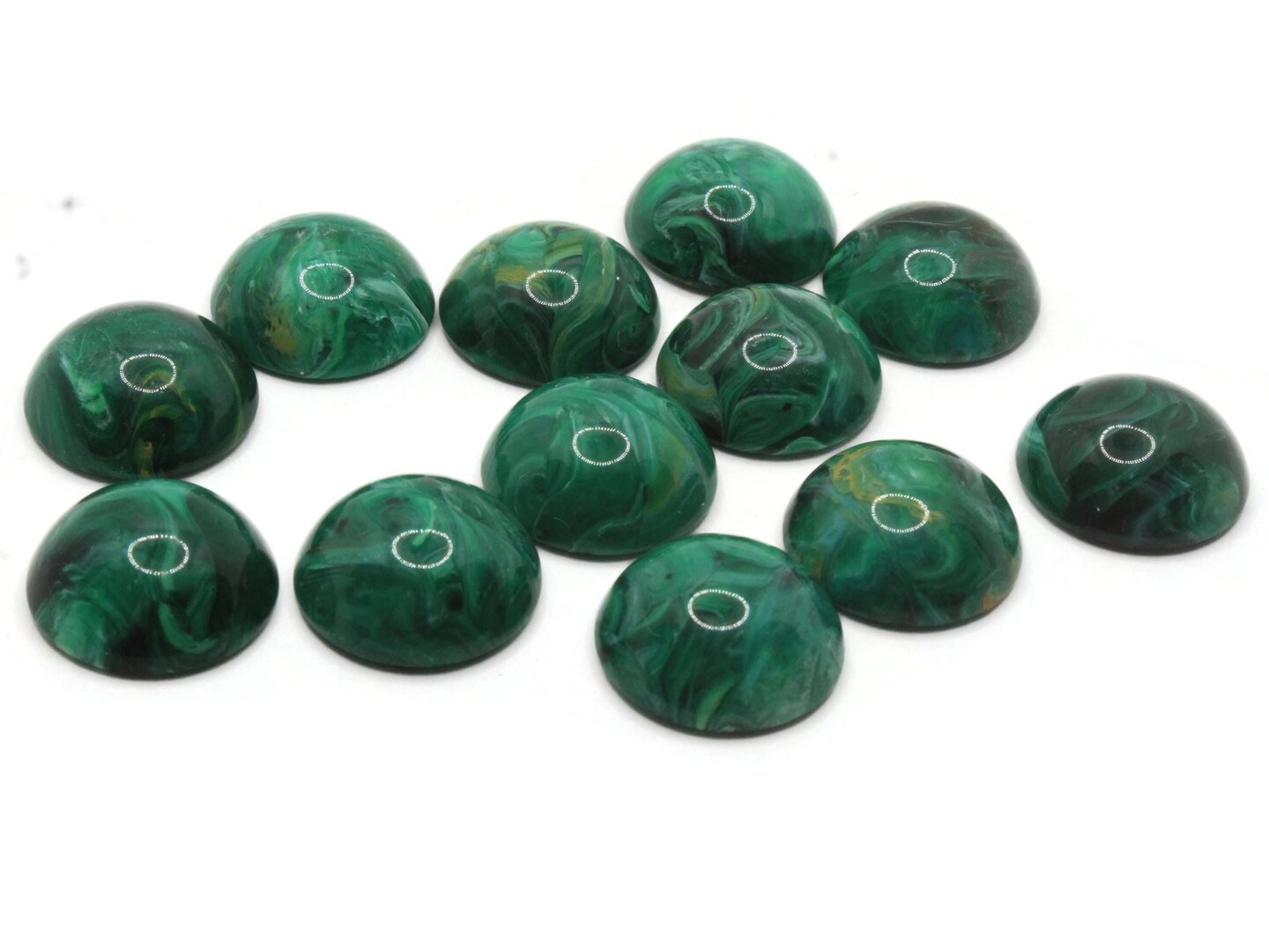 12 19mm Round Swirling Green Flatback Vintage Lucite Plastic Cabochons