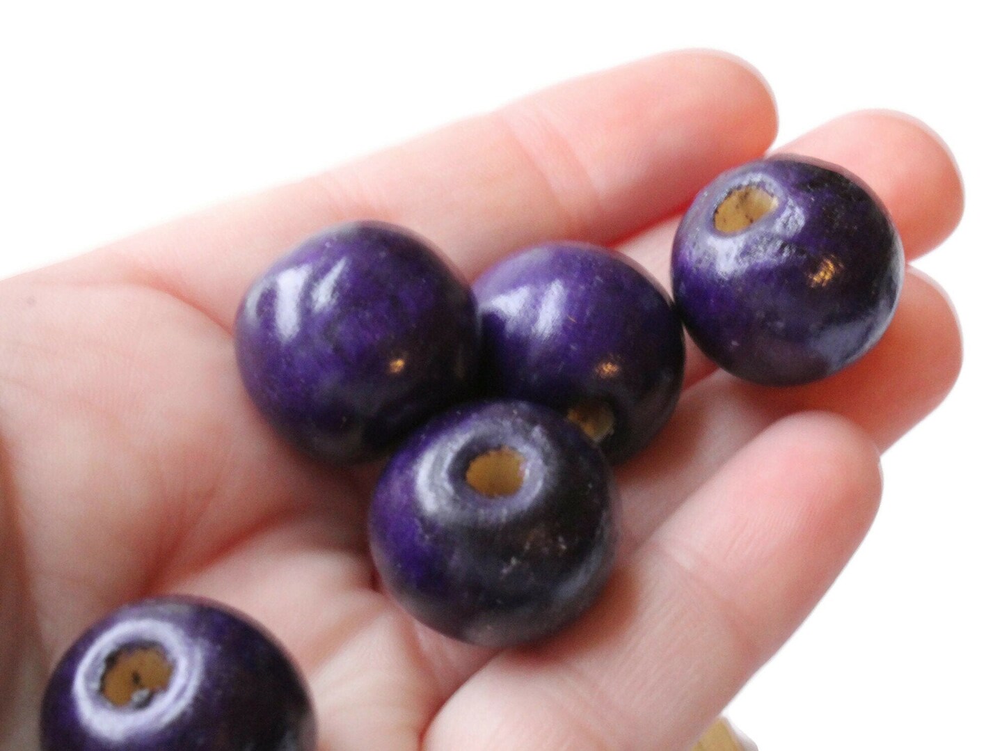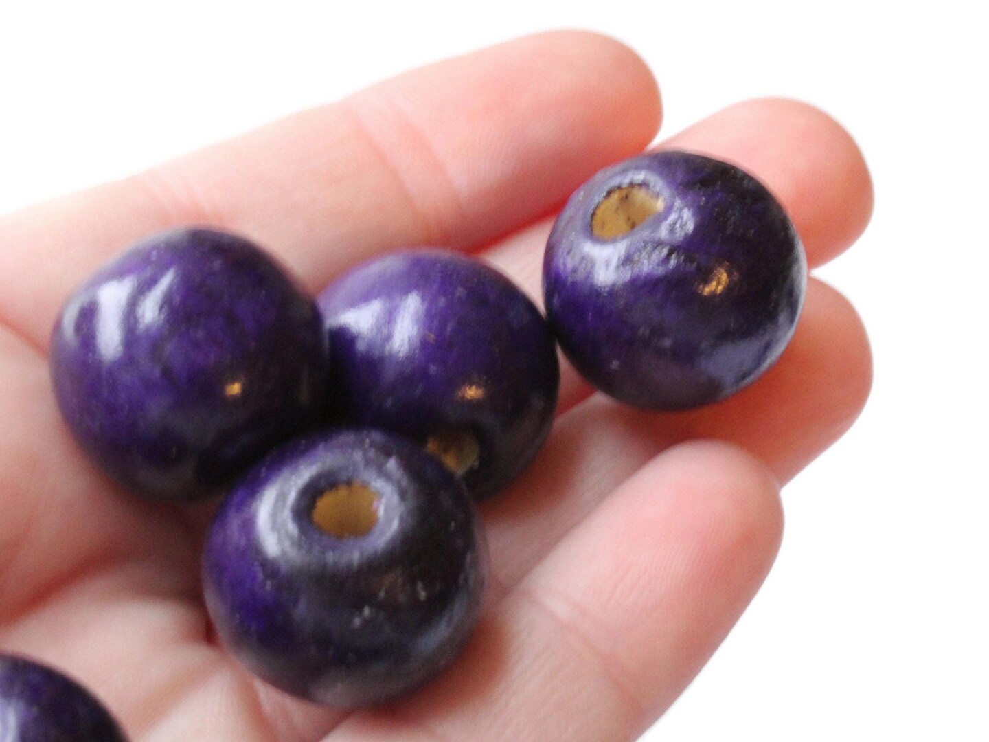 12 19mm x 17mm Round Purple Wood Beads Wooden Ball Beads Macrame Large Hole Beads