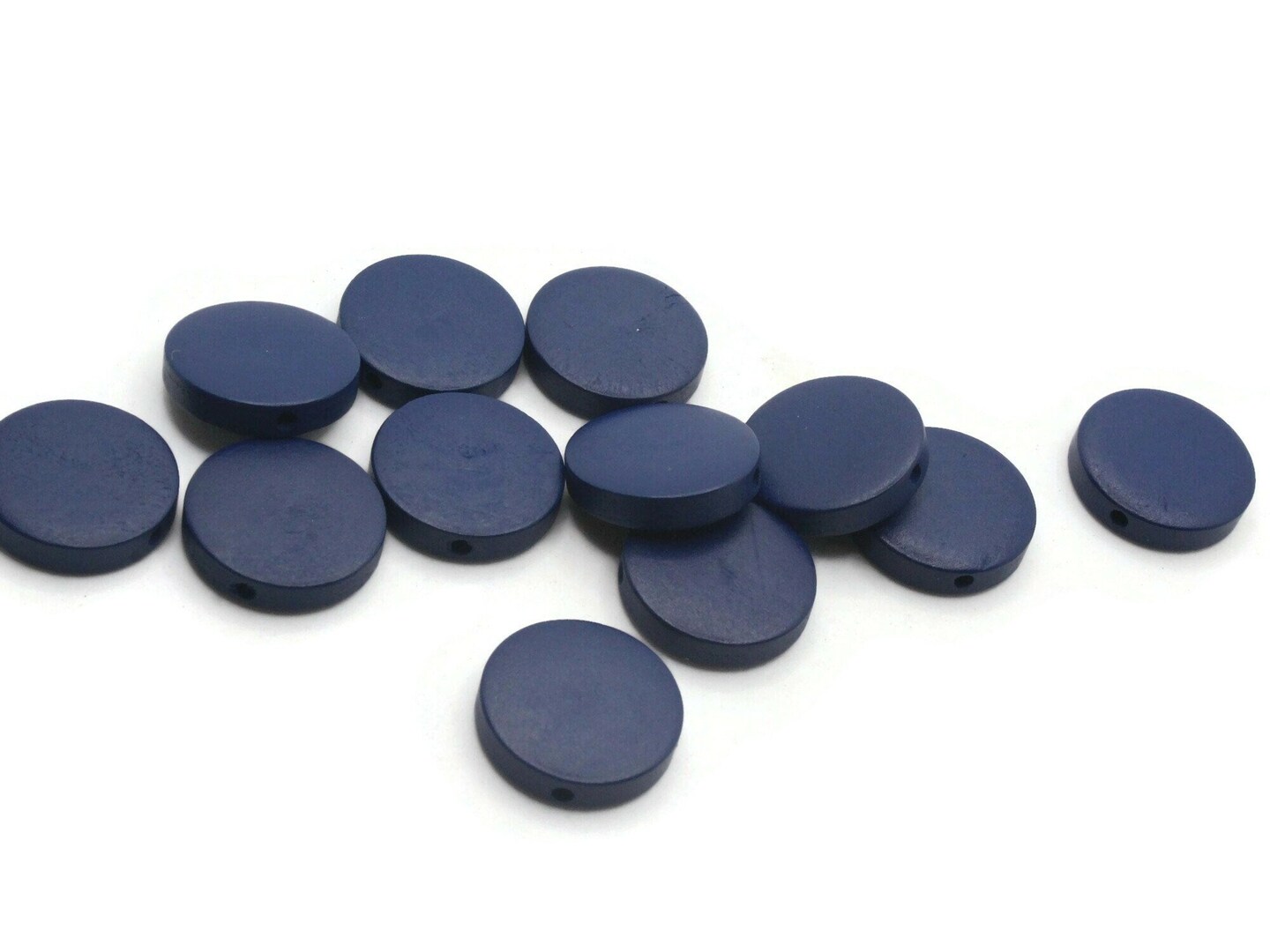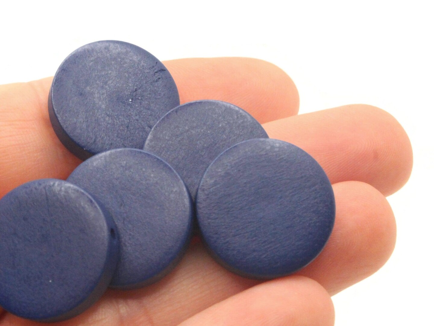 12 20mm Blue Round Flat Disc Wooden Coin Beads