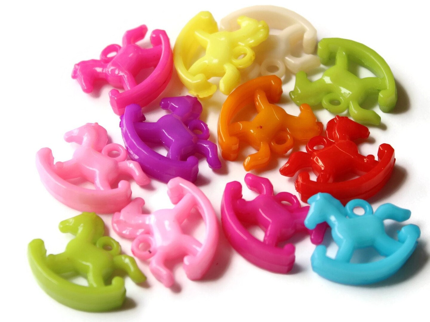 12 20mm Mixed Color Plastic Rocking Horse Charms