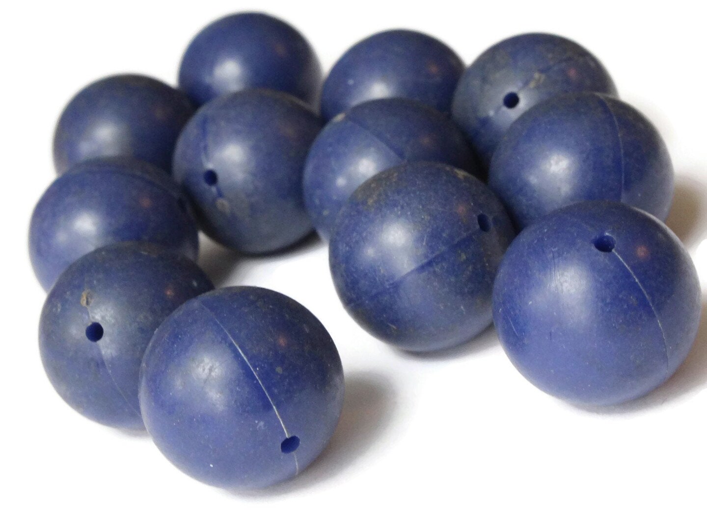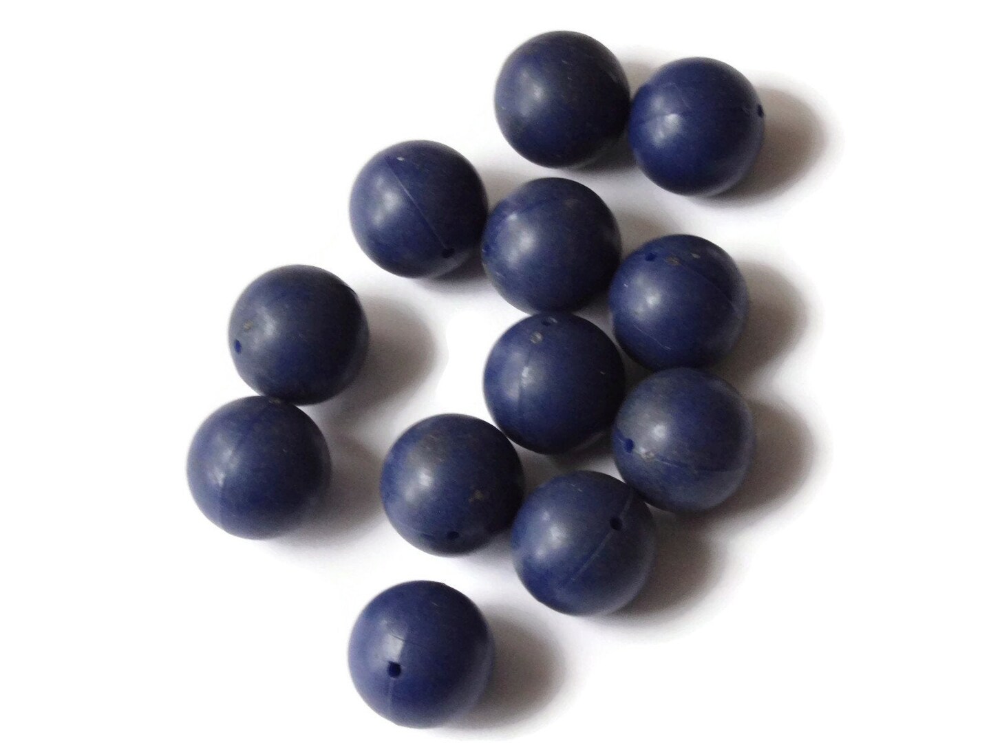 12 20mm Round Blue Vintage Plastic Beads New Old Stock Ball Beads Loose Large Plastic Beads