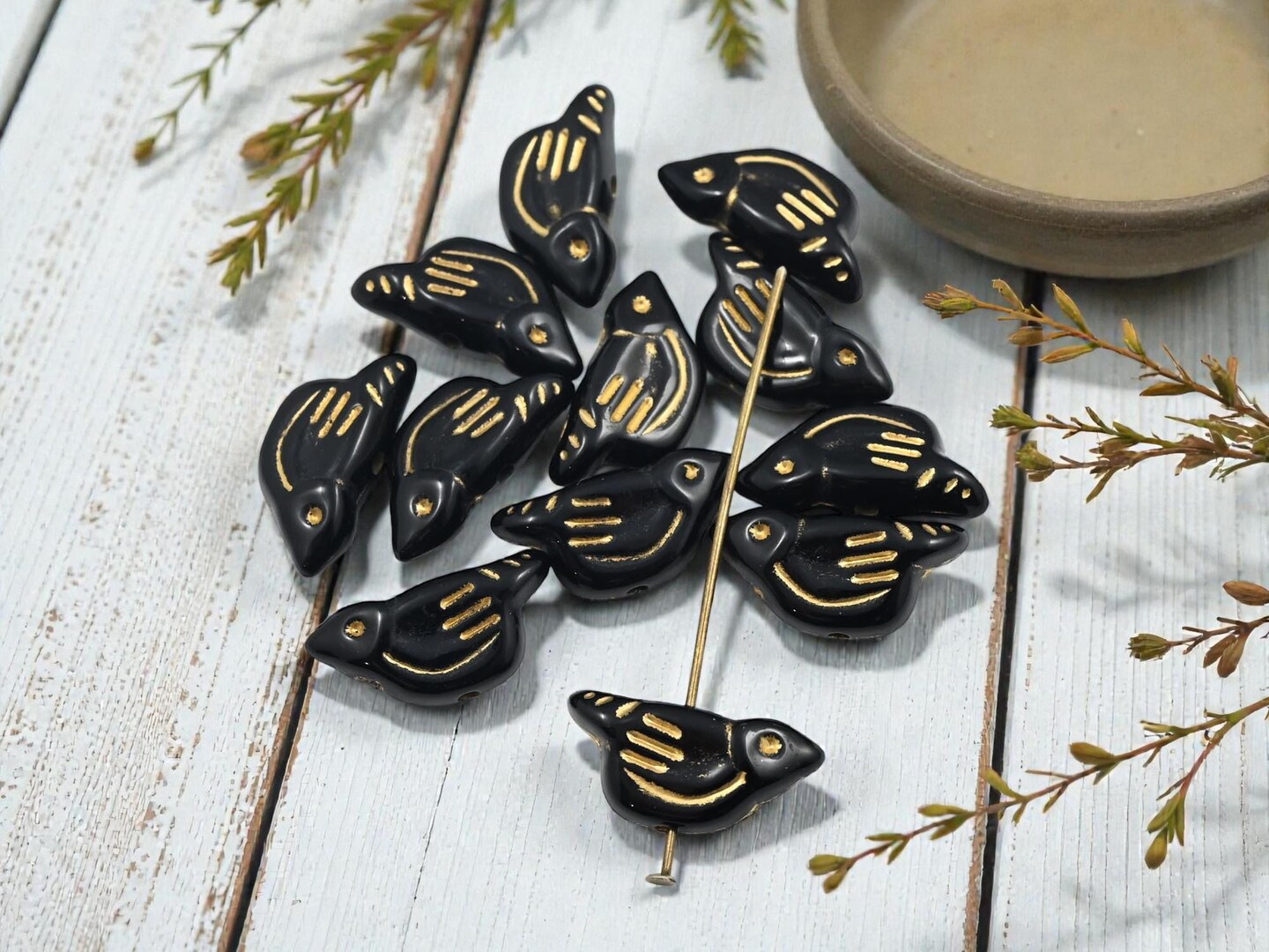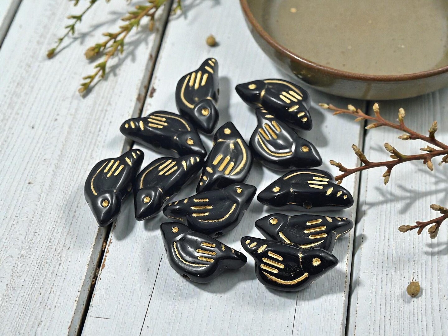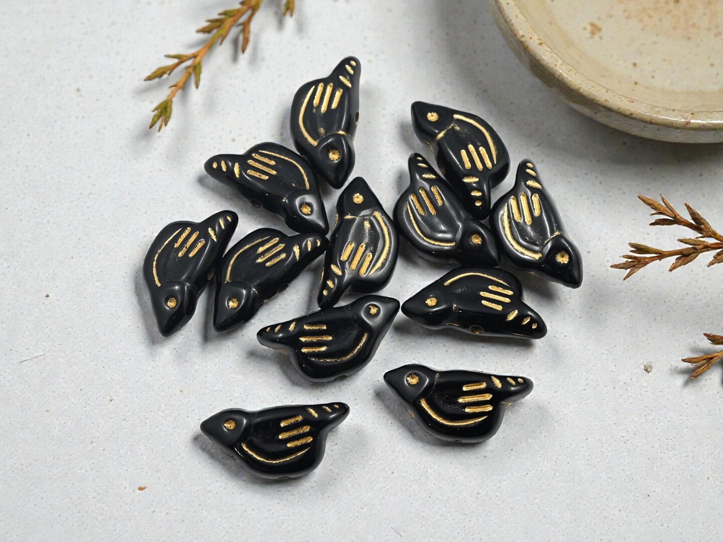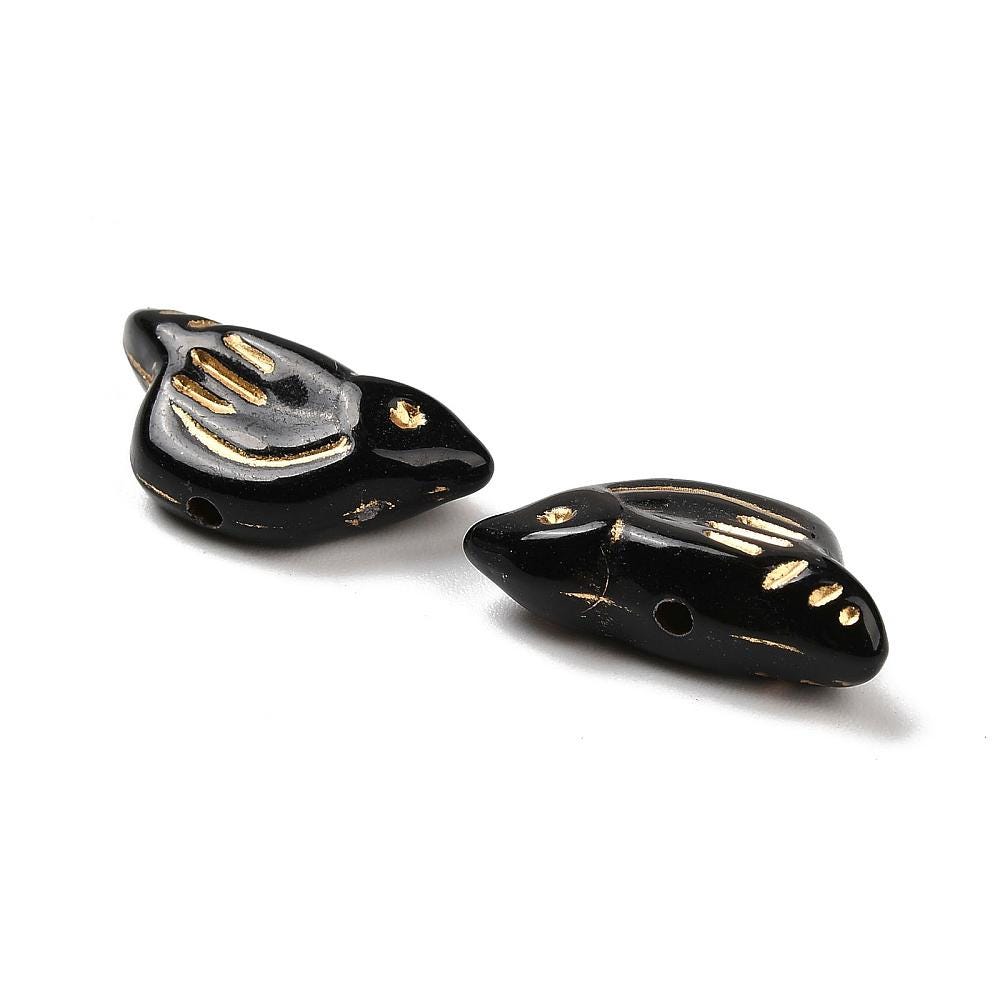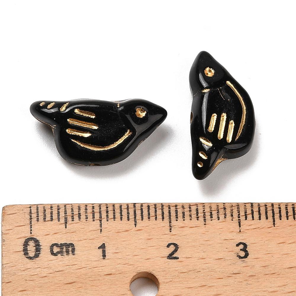 *12* 20x10x6mm Gilded Black Acrylic Bird Beads