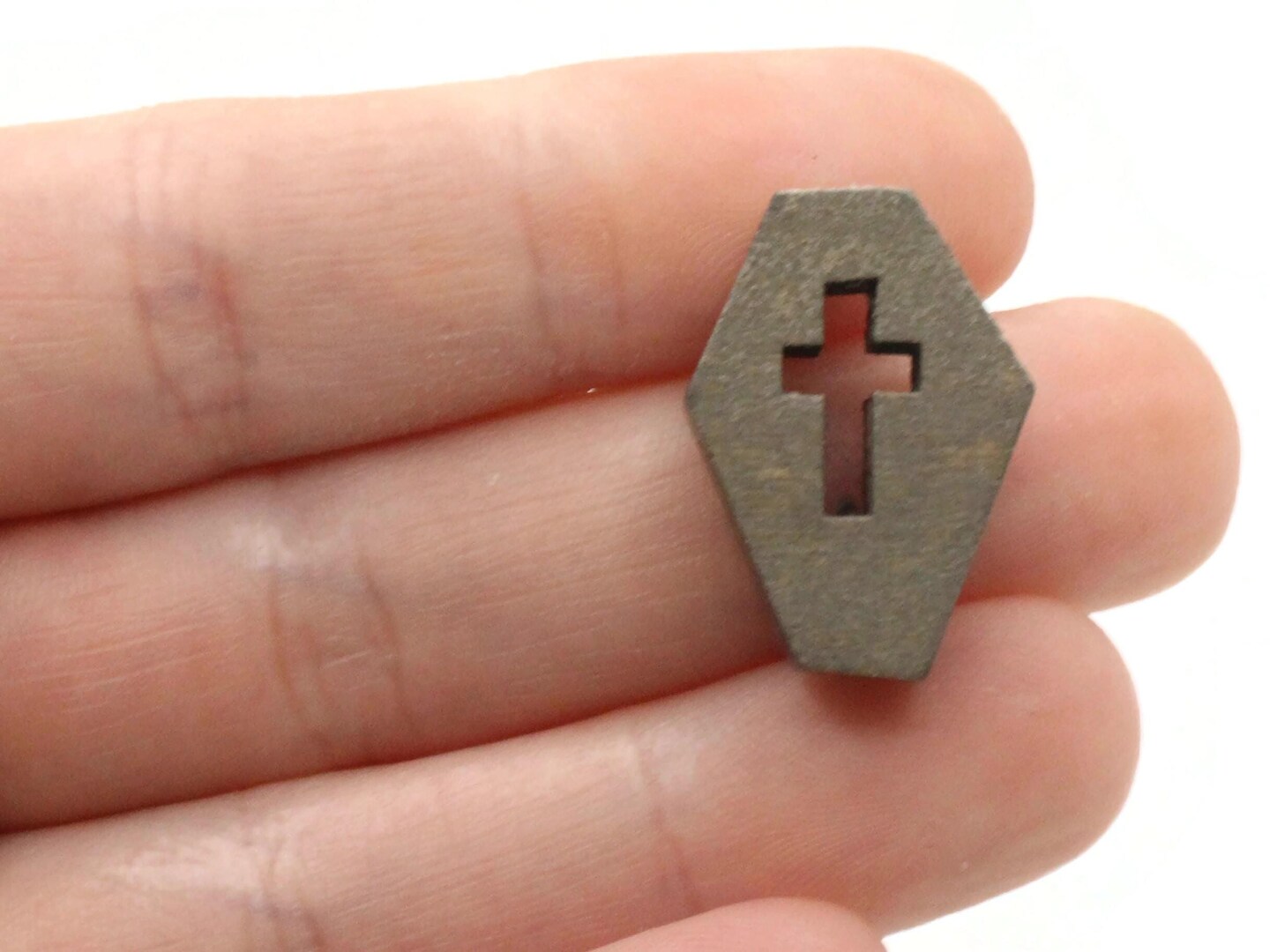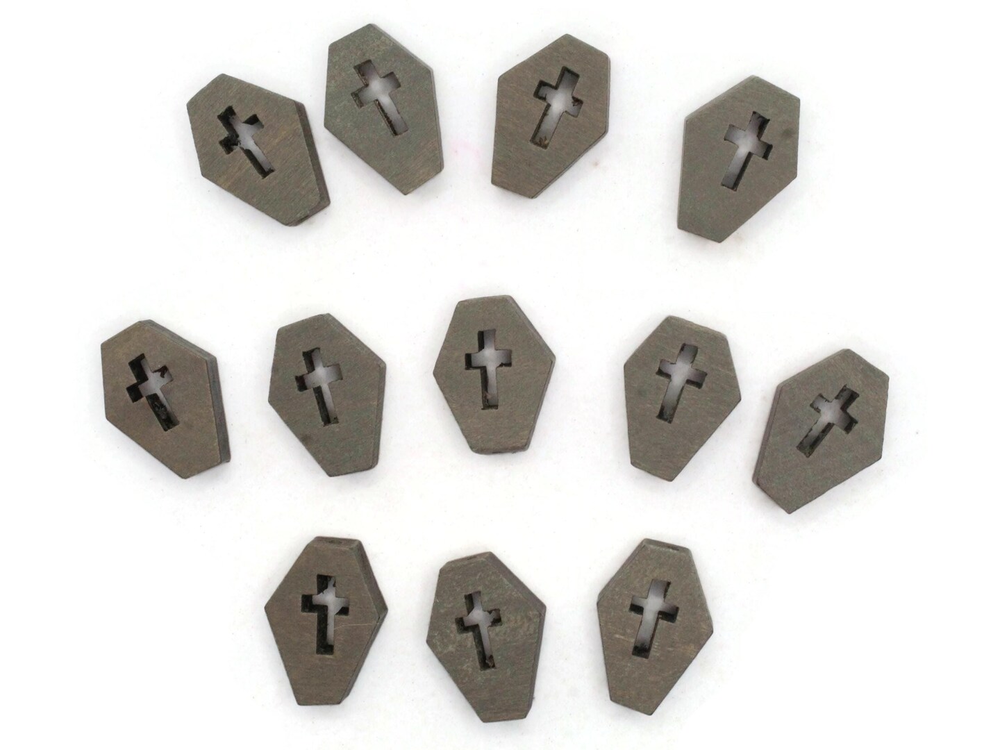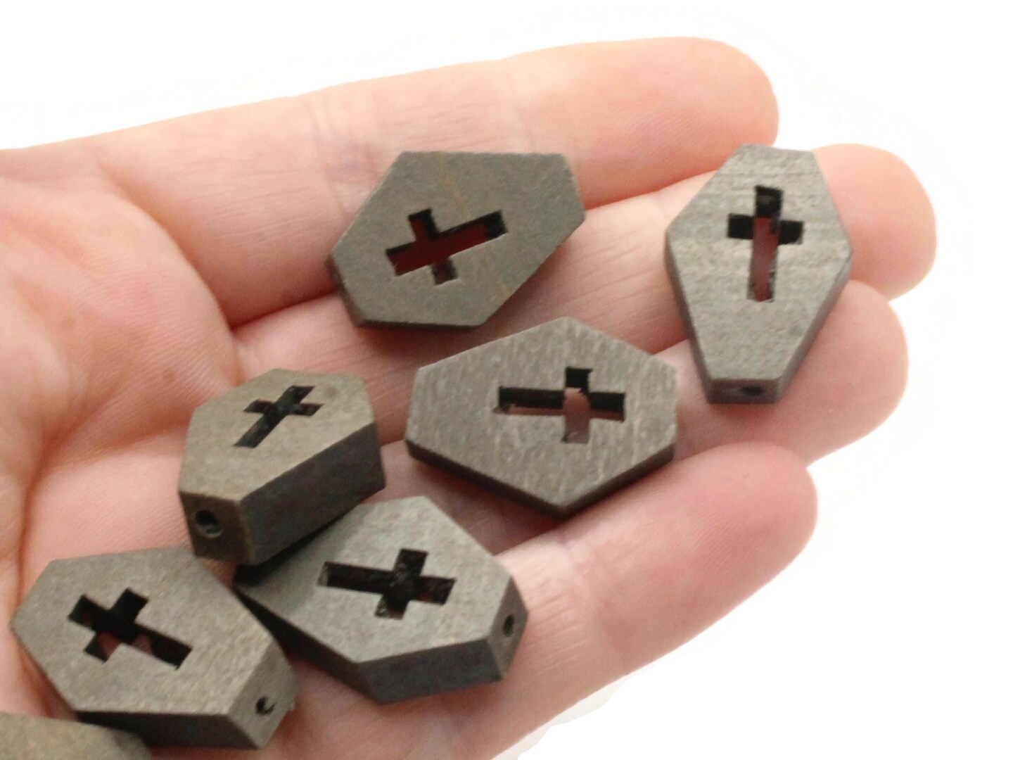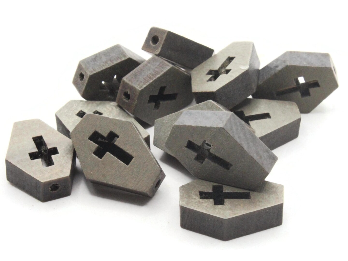 12 23mm Wooden Dark Gray Coffin Tomb Beads Spooky Halloween Beads to String