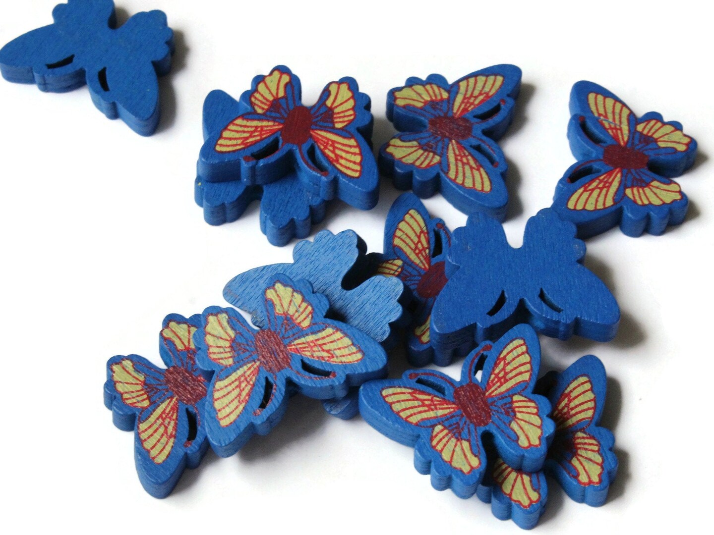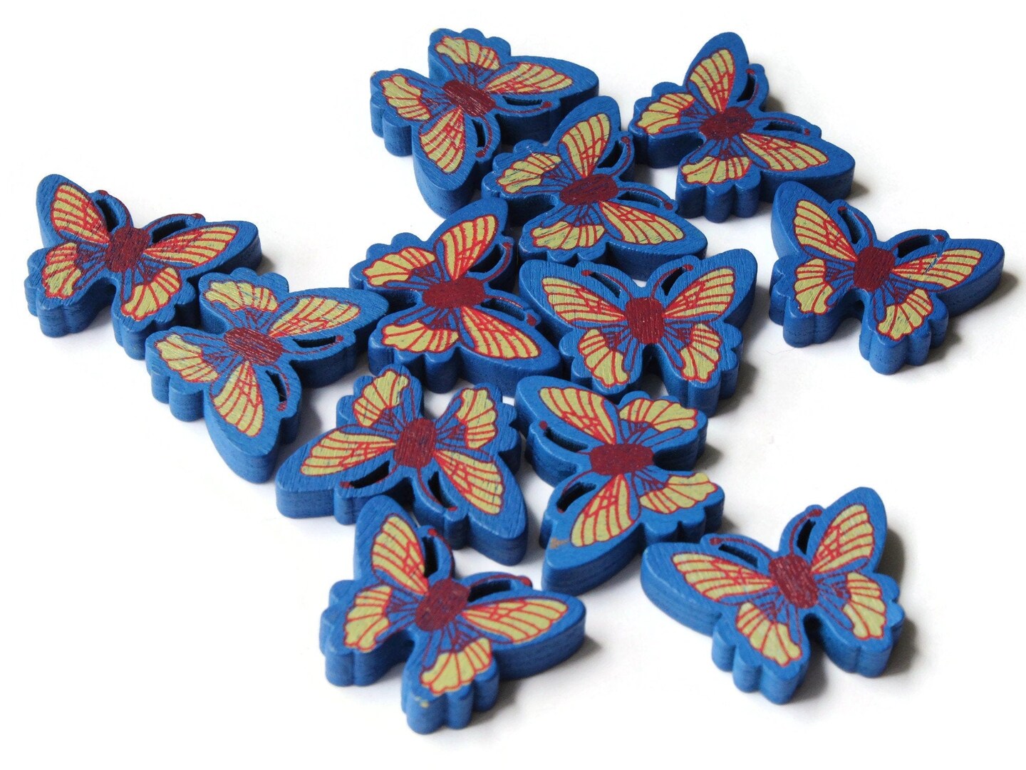 12 26mm Blue Wooden Butterfly Beads Wood Animal Beads Cute Moth Beads to String
