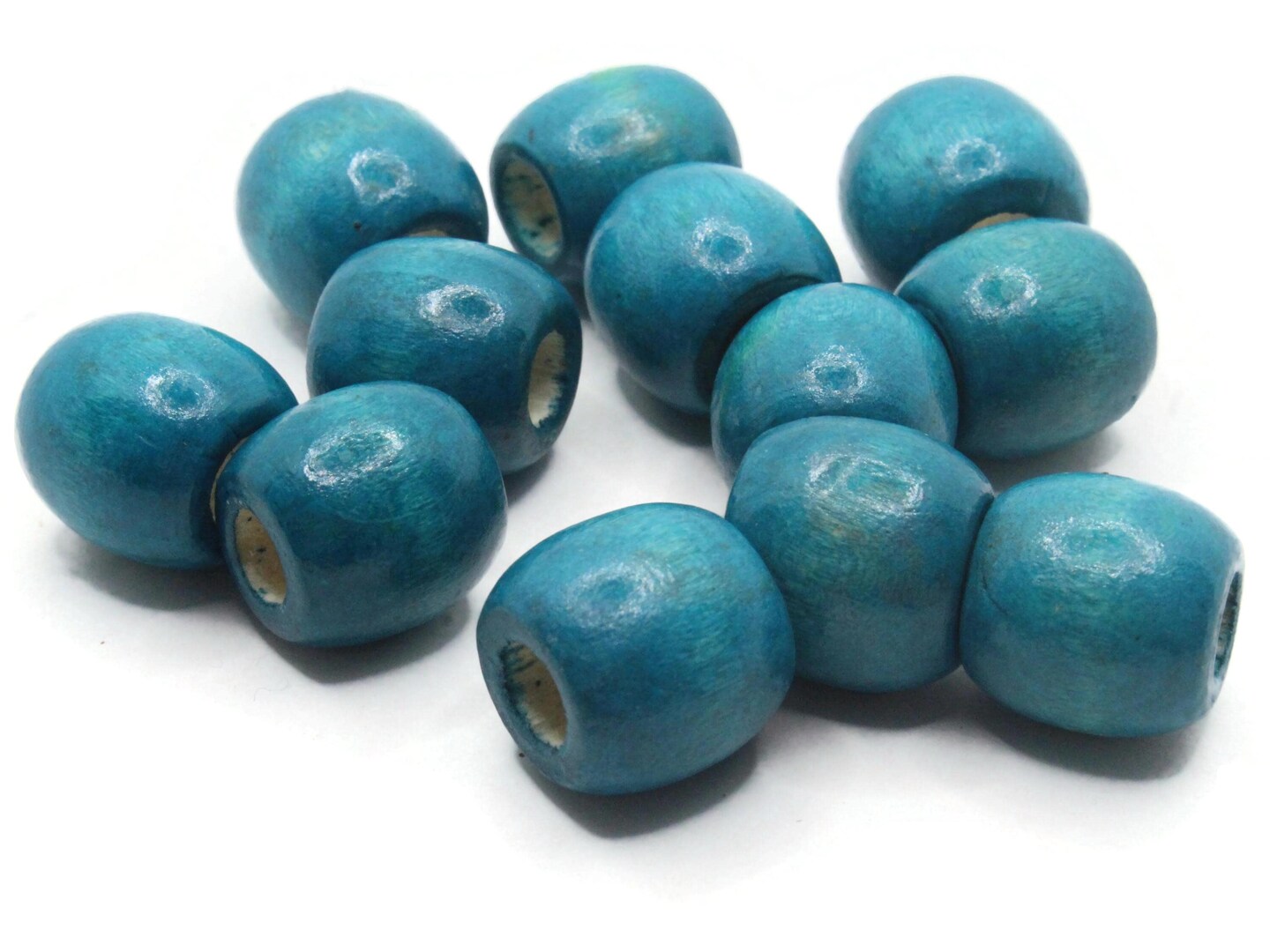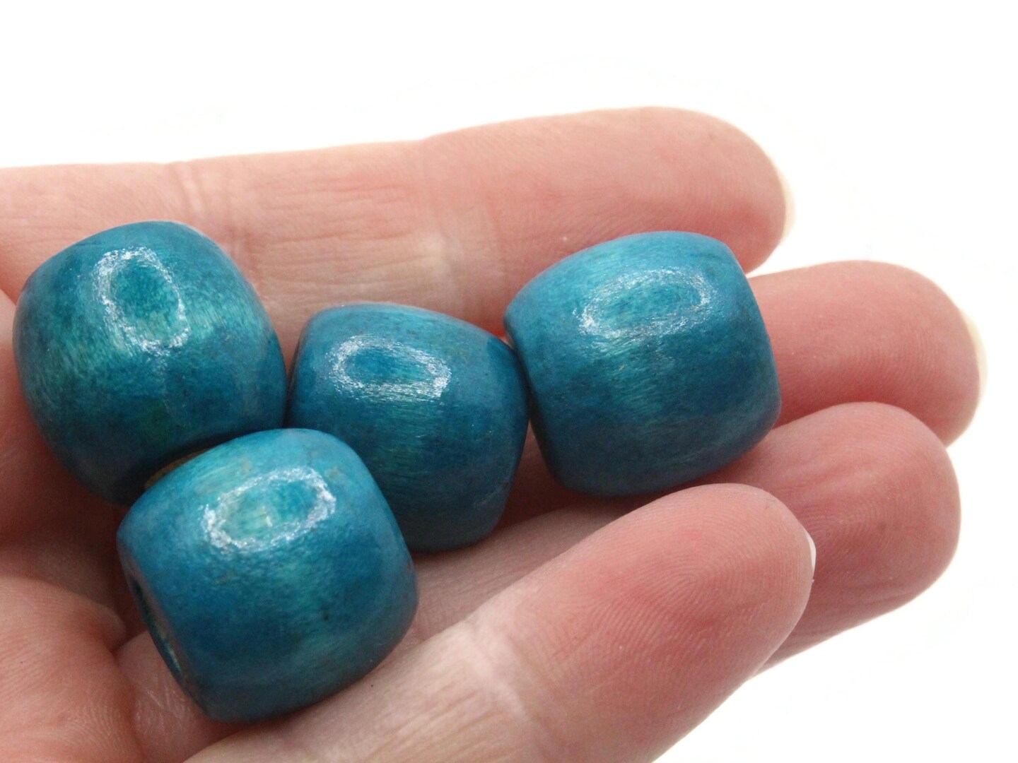 12 30mm Blue Wood Barrel Large Hole Wooden Tube Beads