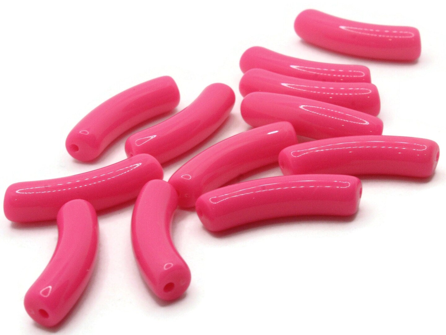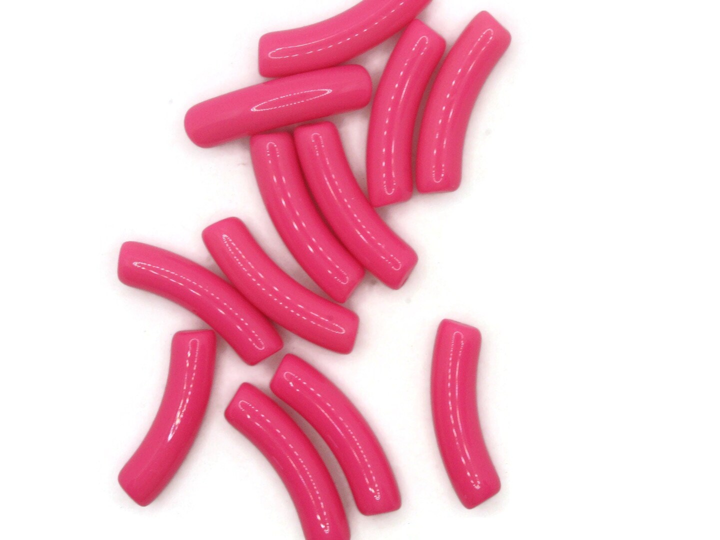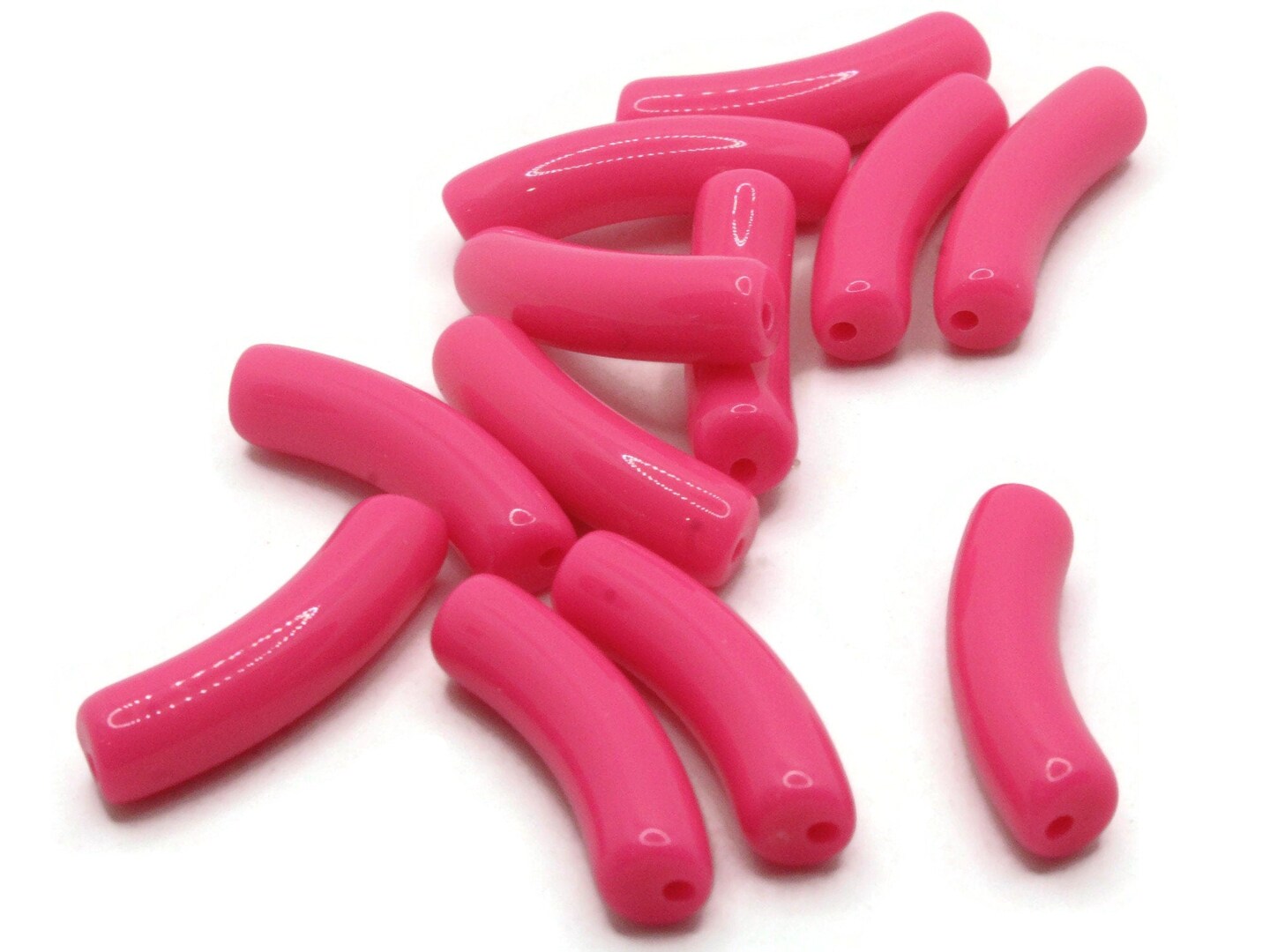 12 32mm Bright Pink Curved Tube Plastic Beads