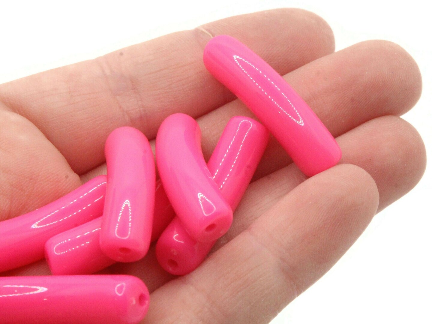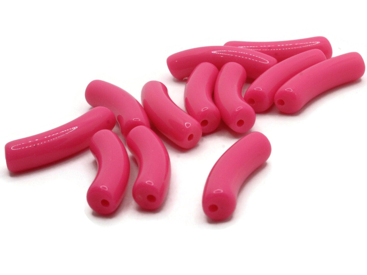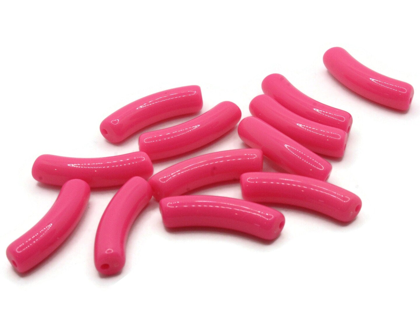 12 32mm Bright Pink Curved Tube Plastic Beads