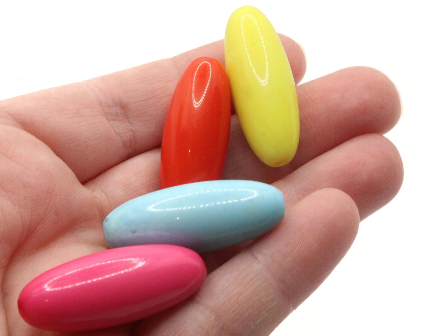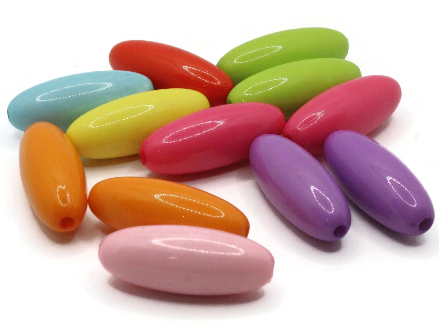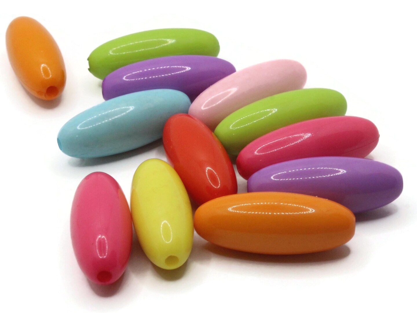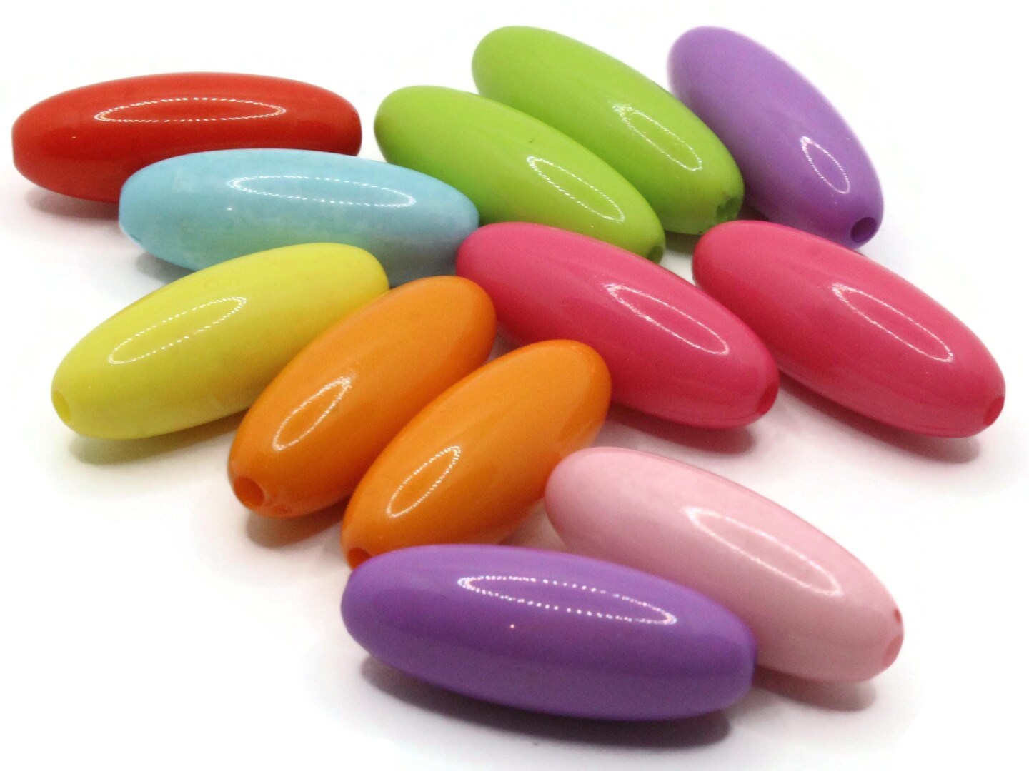12 32mm Mixed Color Oval Tube Plastic Beads