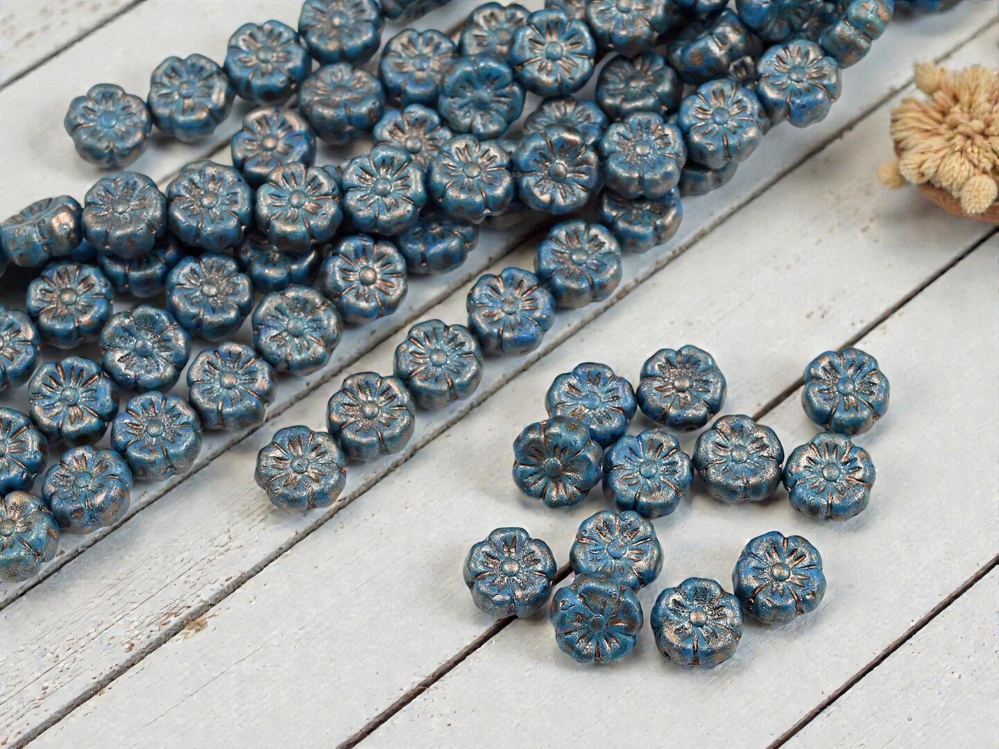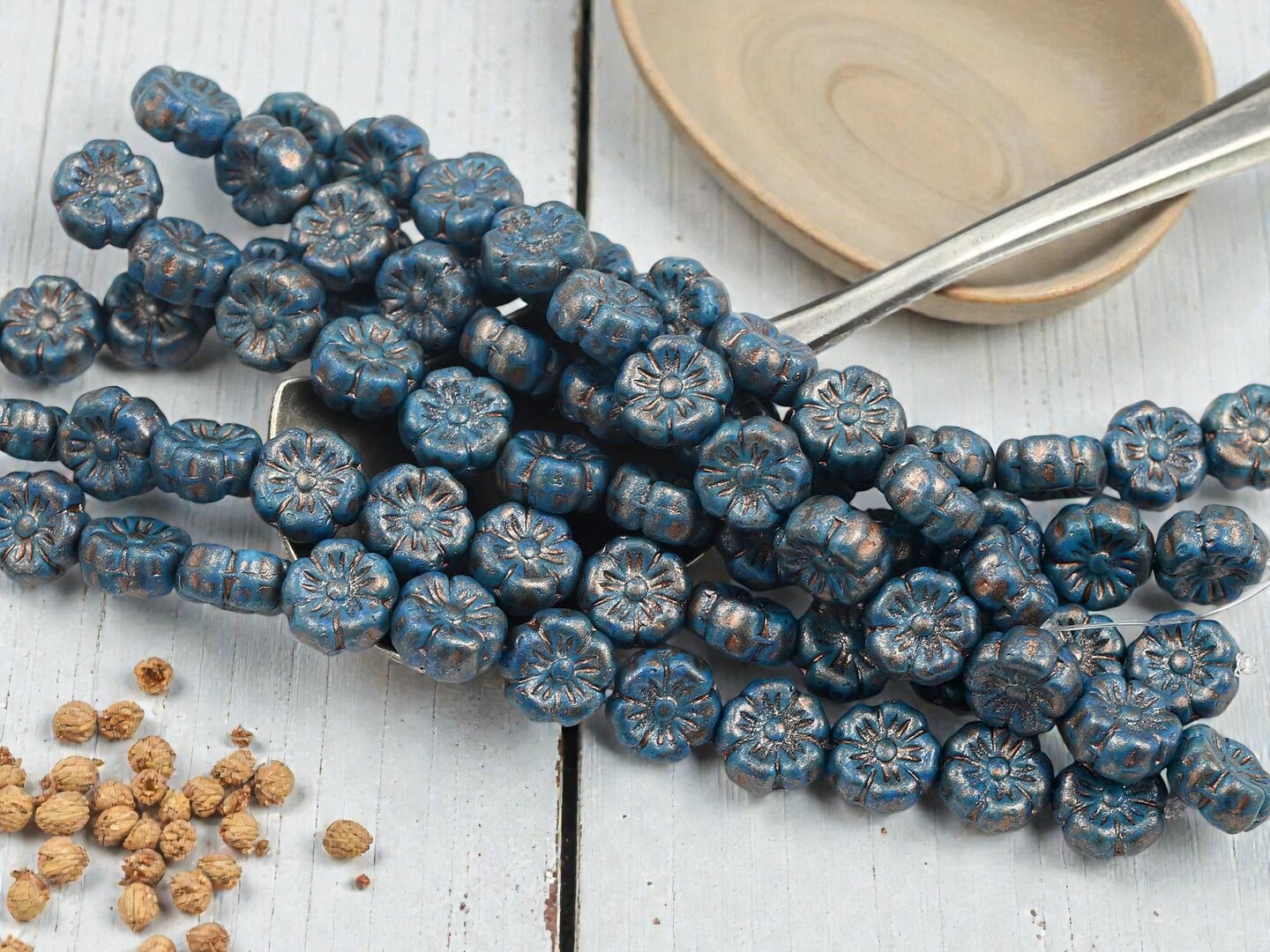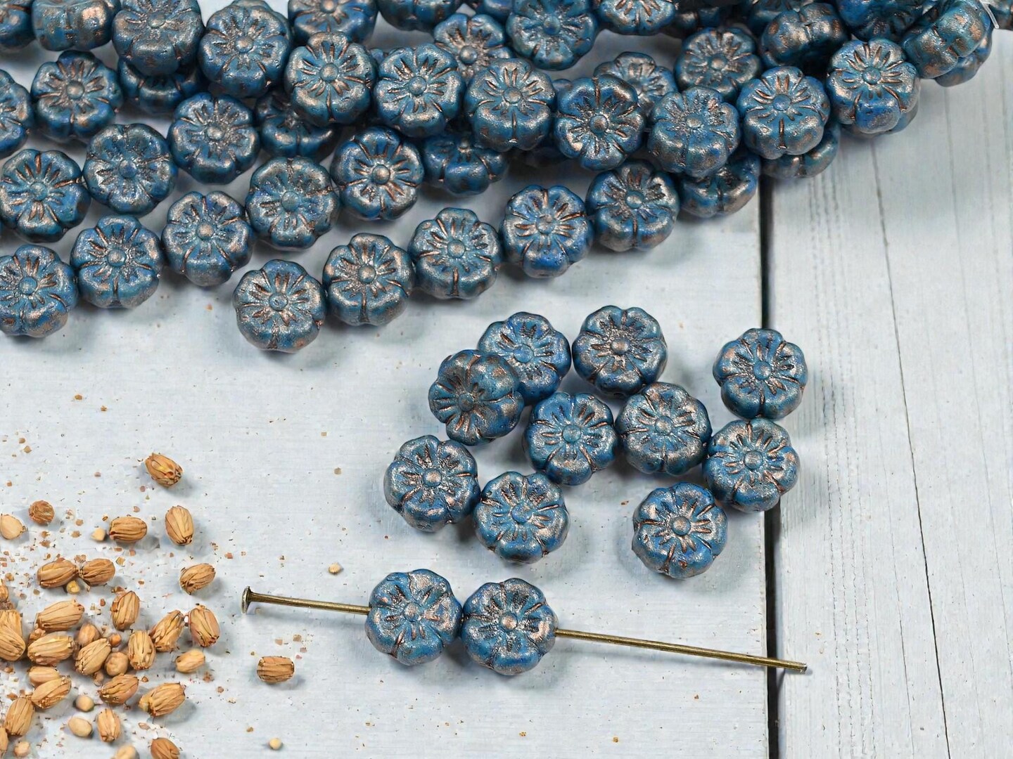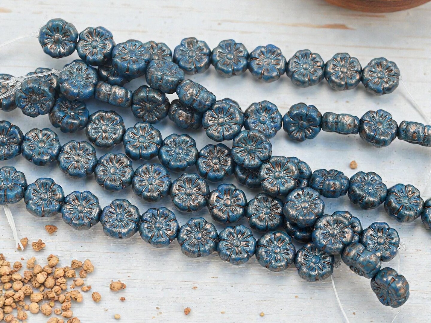 *12* 8mm Bronze Washed Hibiscus Flower Beads