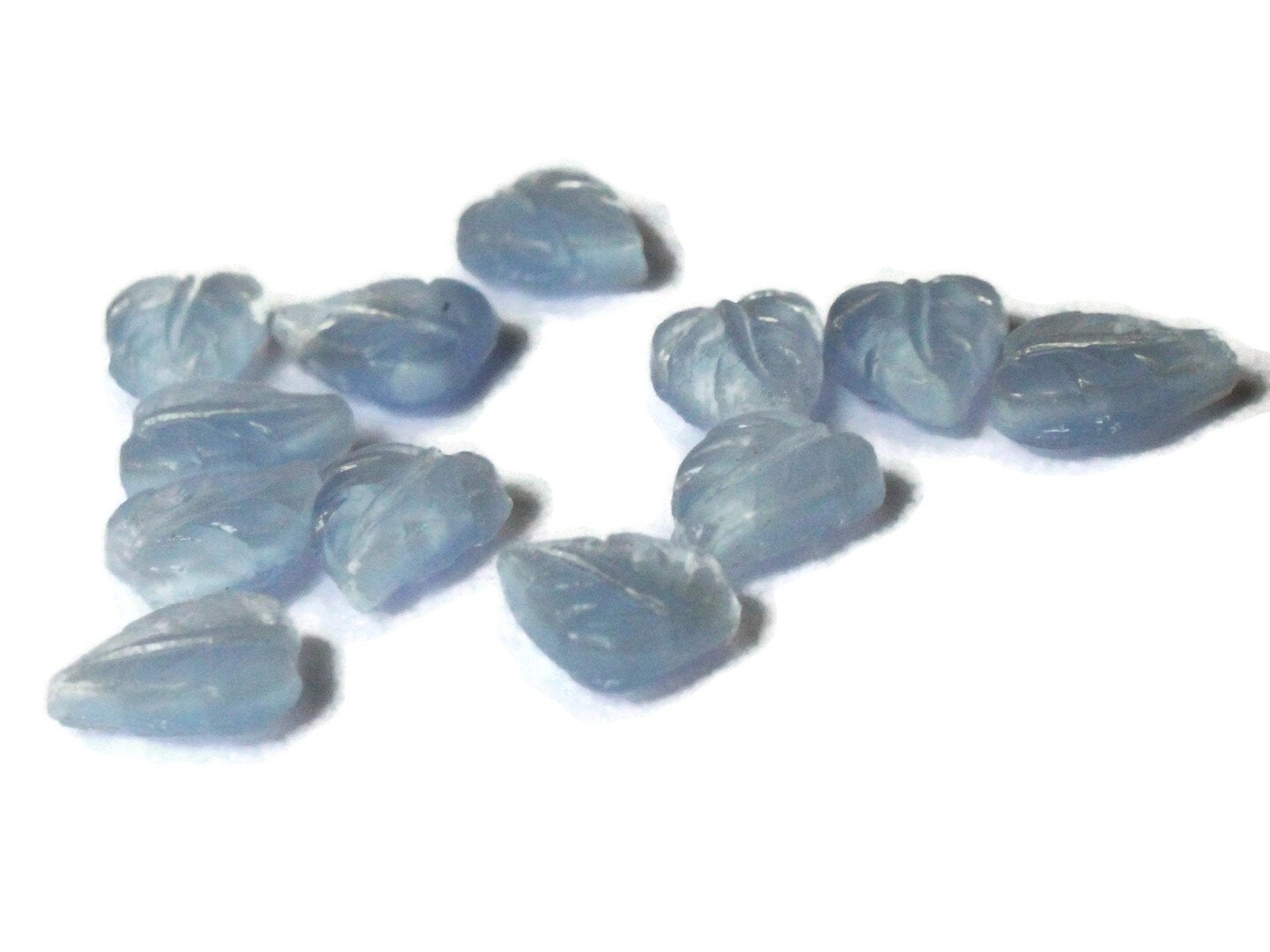 12 8mm x 6mm Blue Moonstone Leaf Cabochons - Tiny Little Leaves - Vintage Czech Glass Cabochons